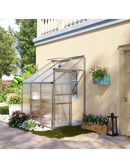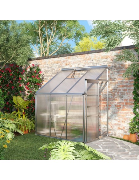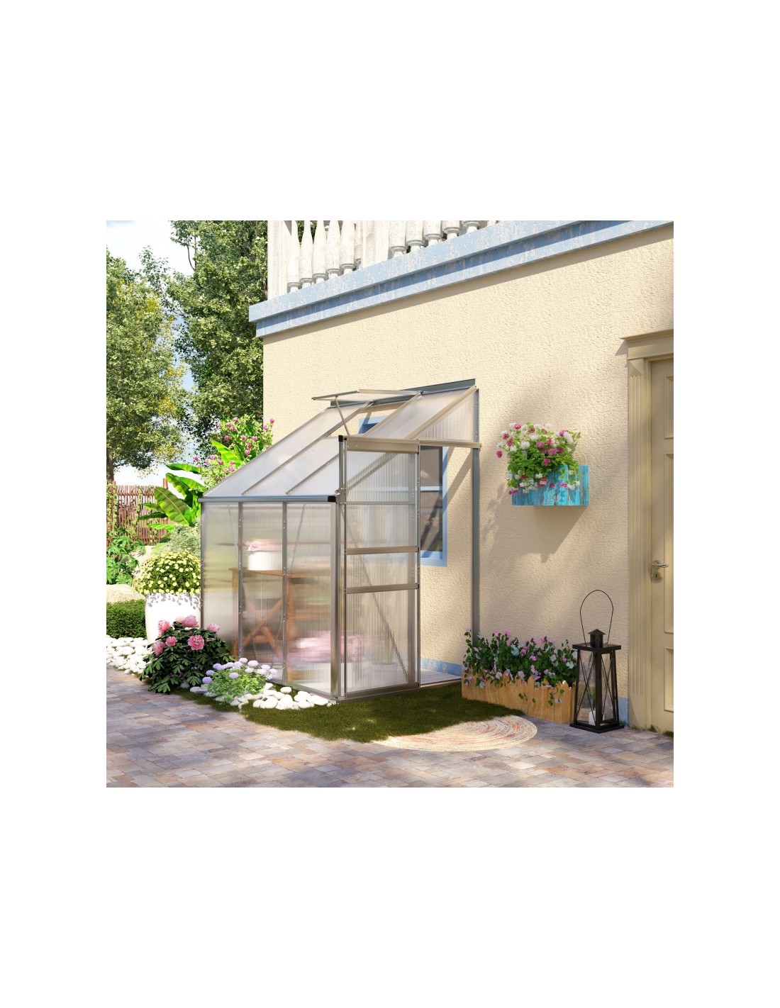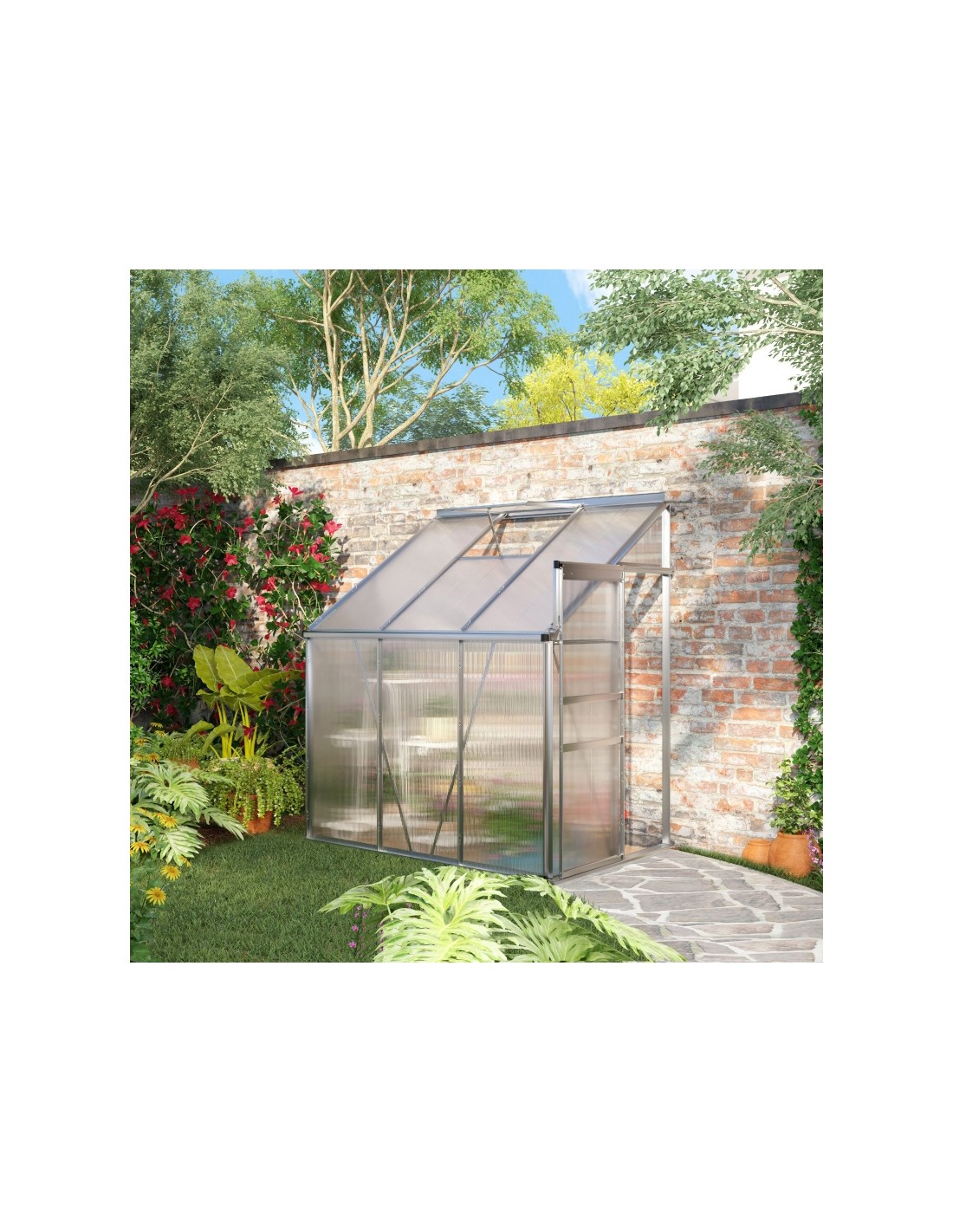 Drivhus til væg i aluminium og polycarbonat B127 x D192 x H214 cm - Stålgrå
