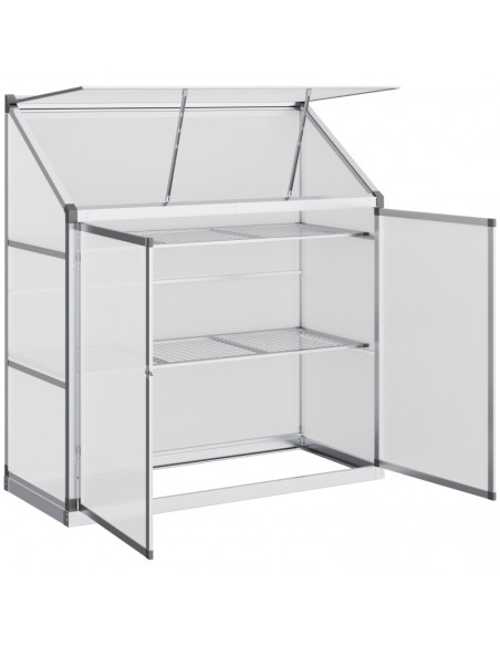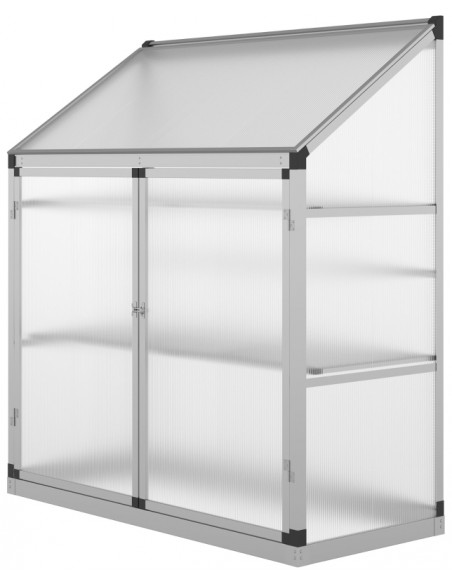 Væksthus til væg i aluminium og polycarbonat B131 x D58 x H139,5 cm - Grå/Klar rillet