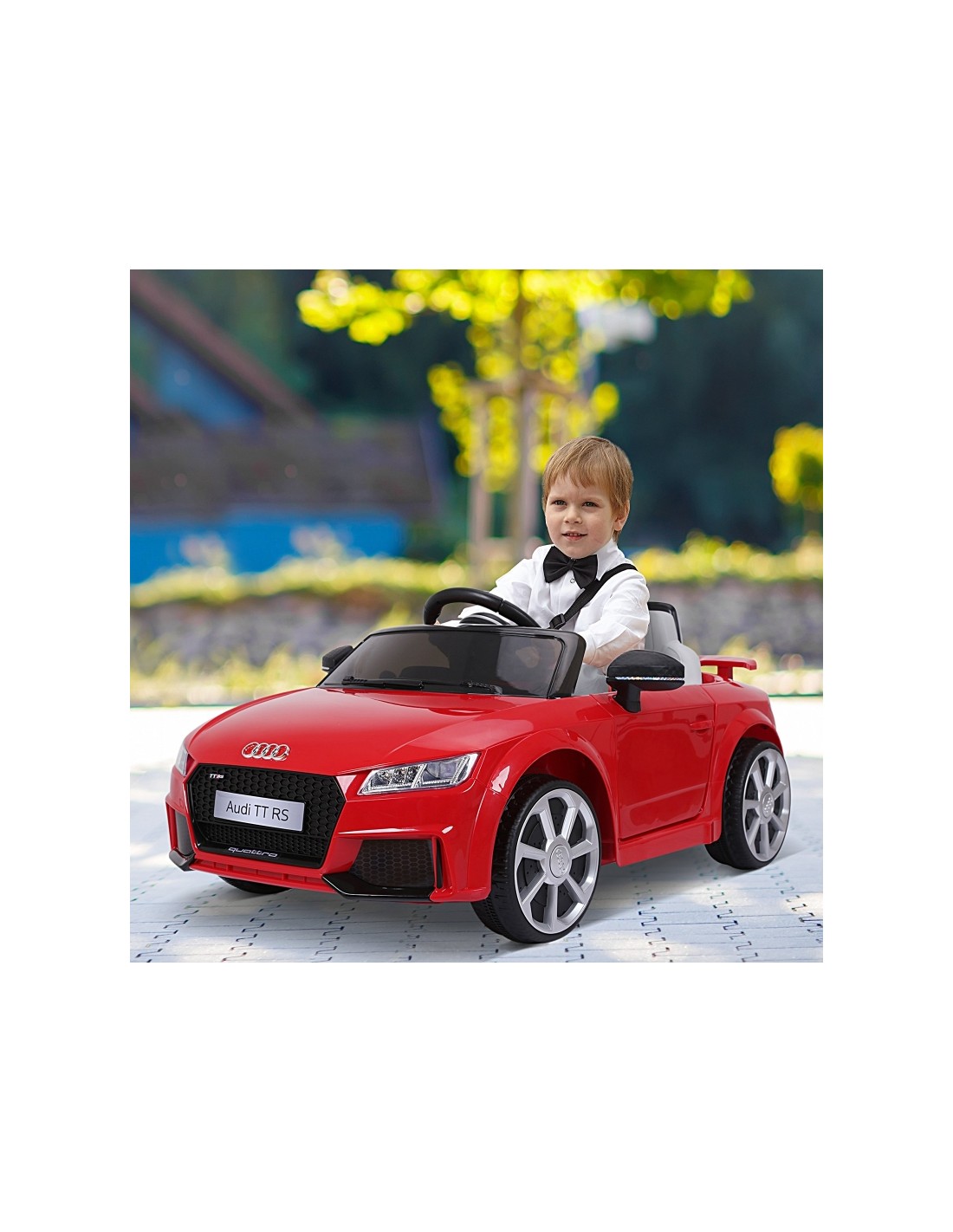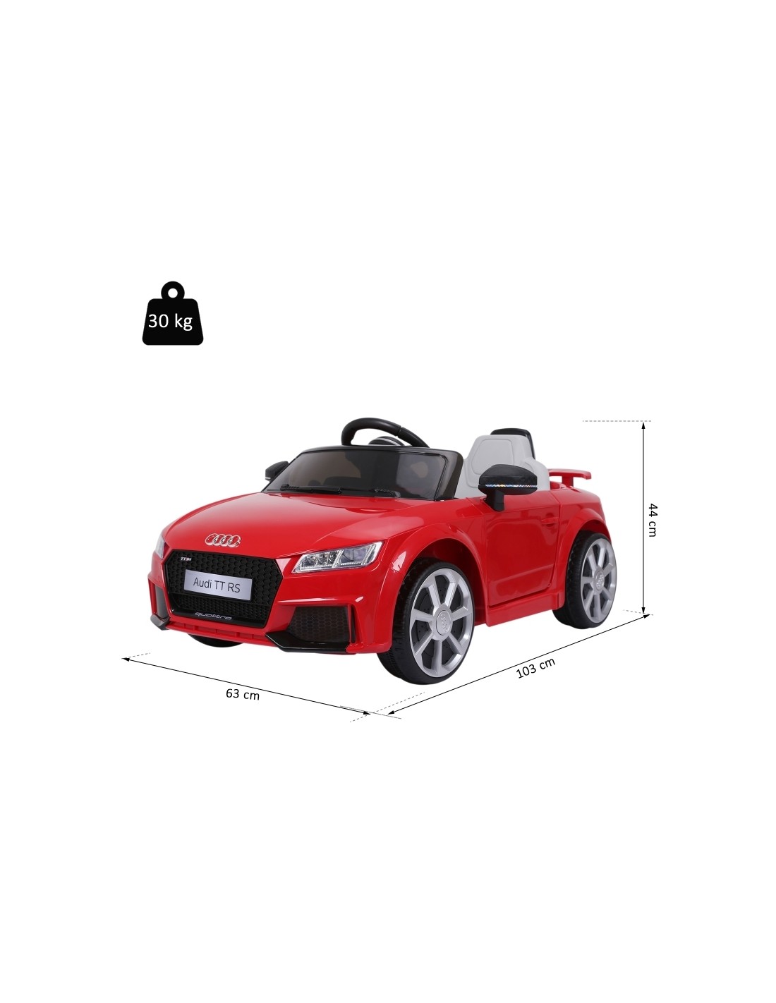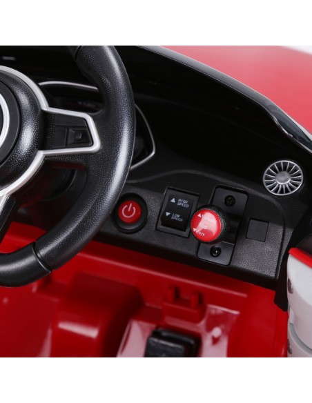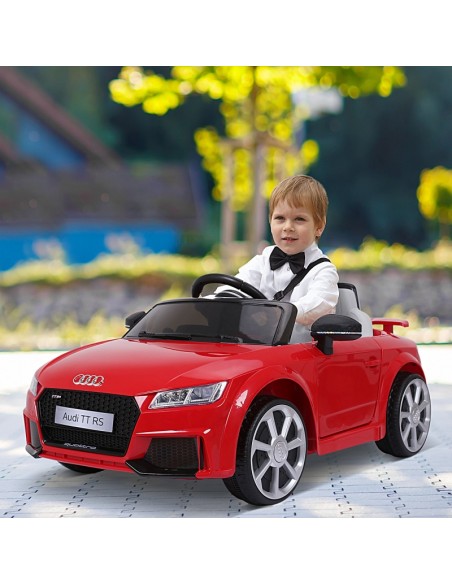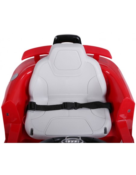 Audi elbil til børn, udført i et design af rød kunststof. Elbilen måler 103 cm i længden og 63 cm i bredden og har plads til et barn i alderen 3 - 5 år. Bilen kommer med forældre fjernbetjening og kører på 12V batteri med en ladetid på cirka 8 - 12 timer for fuld opladning. Bilens hastighed er 3 km/t og kan holde batteritid i op til 45 min.