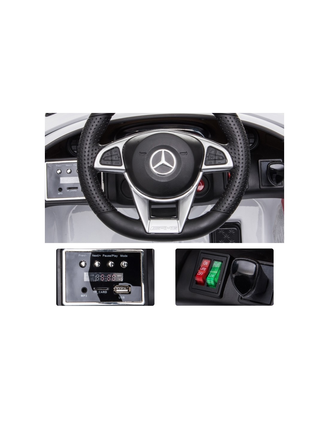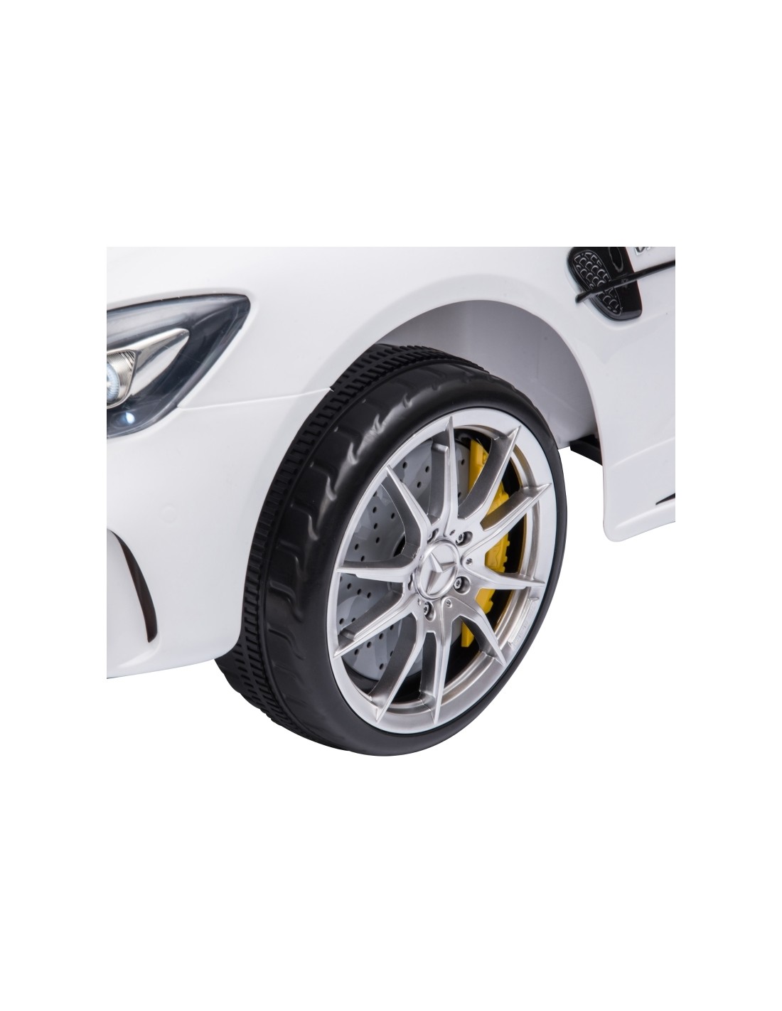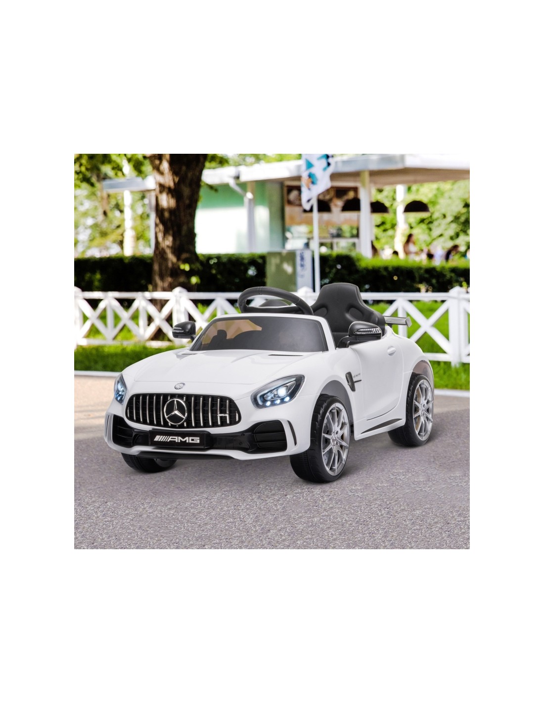 Mercedes AMG elbil til børn, udført i et design af hvid kunststof. Elbilen måler 105 cm i længden og 58 cm i bredden og har plads til et barn i alderen 3 - 5 år. Bilen kommer med forældre fjernbetjening og kører på 12V batteri med en ladetid på cirka 8 - 12 timer for fuld opladning. Bilens hastighed er 3 - 5 km/t og kan holde batteritid i op til 45 min.