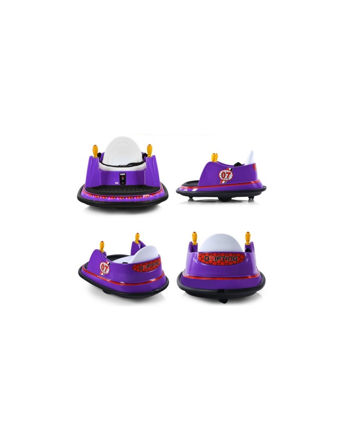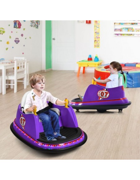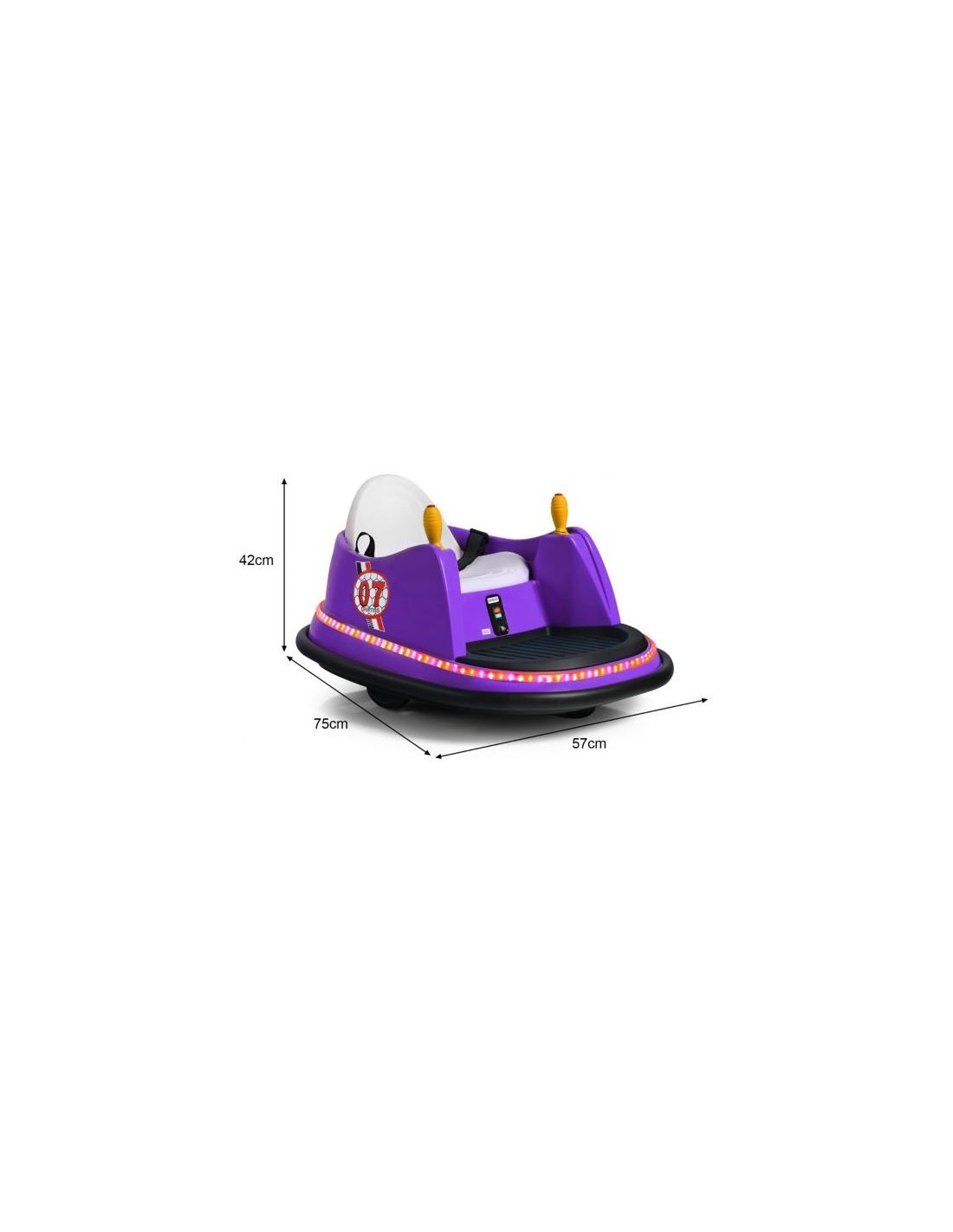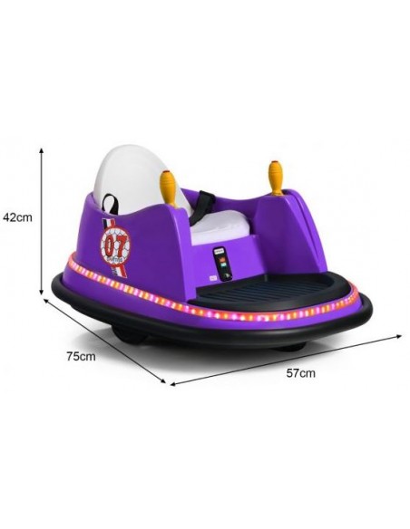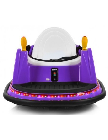 Radiobil elbil til 1 barn, udført i et design af lilla kunststof og med støddæmper. Elbilen måler 75 cm i længden og 57 cm i bredden og har plads til et barn i alderen 2 - 5 år. Bilen kommer med forældre fjernbetjening og kører på 6V batteri med en ladetid på cirka 8 - 12 timer for fuld opladning. Bilens hastighed er 2 km/t og kan holde batteritid i op til 45 min. Bilen kan dreje 360°.