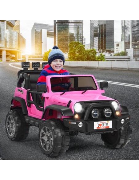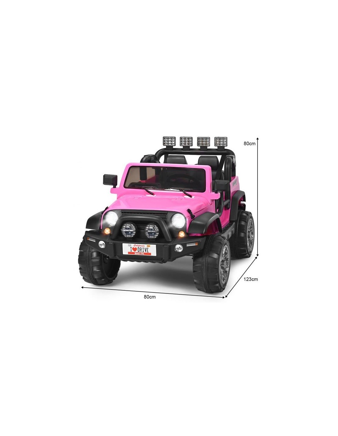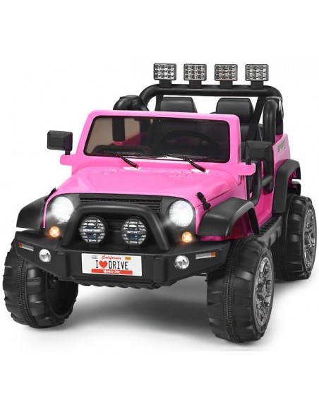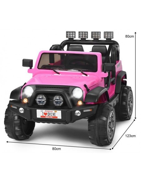 Jeep elbil til 2 børn, udført i et design af rosa kunststof. Elbilen måler 123 cm i længden og 80 cm i bredden og har plads til børn i alderen 3 - 6 år. Bilen kommer med forældre fjernbetjening og kører på 12V batteri med en ladetid på cirka 8 - 12 timer for fuld opladning. Bilens hastighed er 2,5 - 4 km/t og kan holde batteritid i op til 45 min.