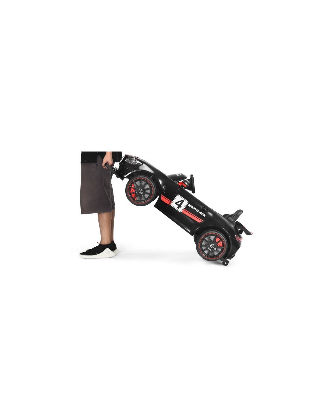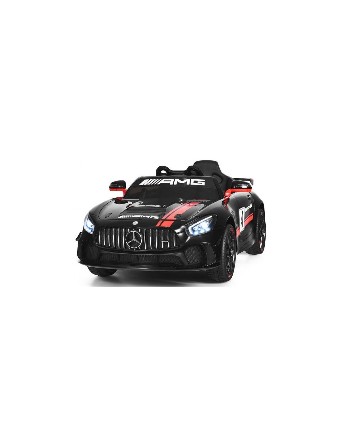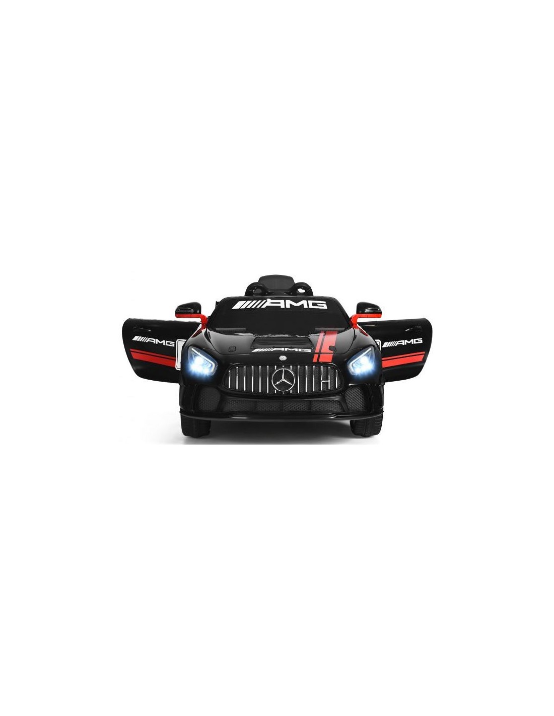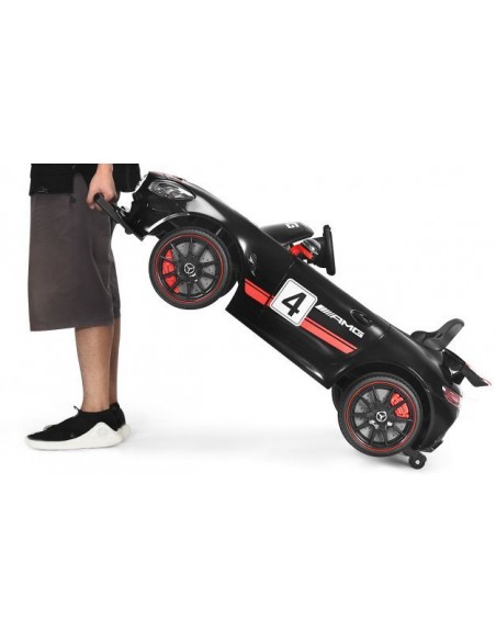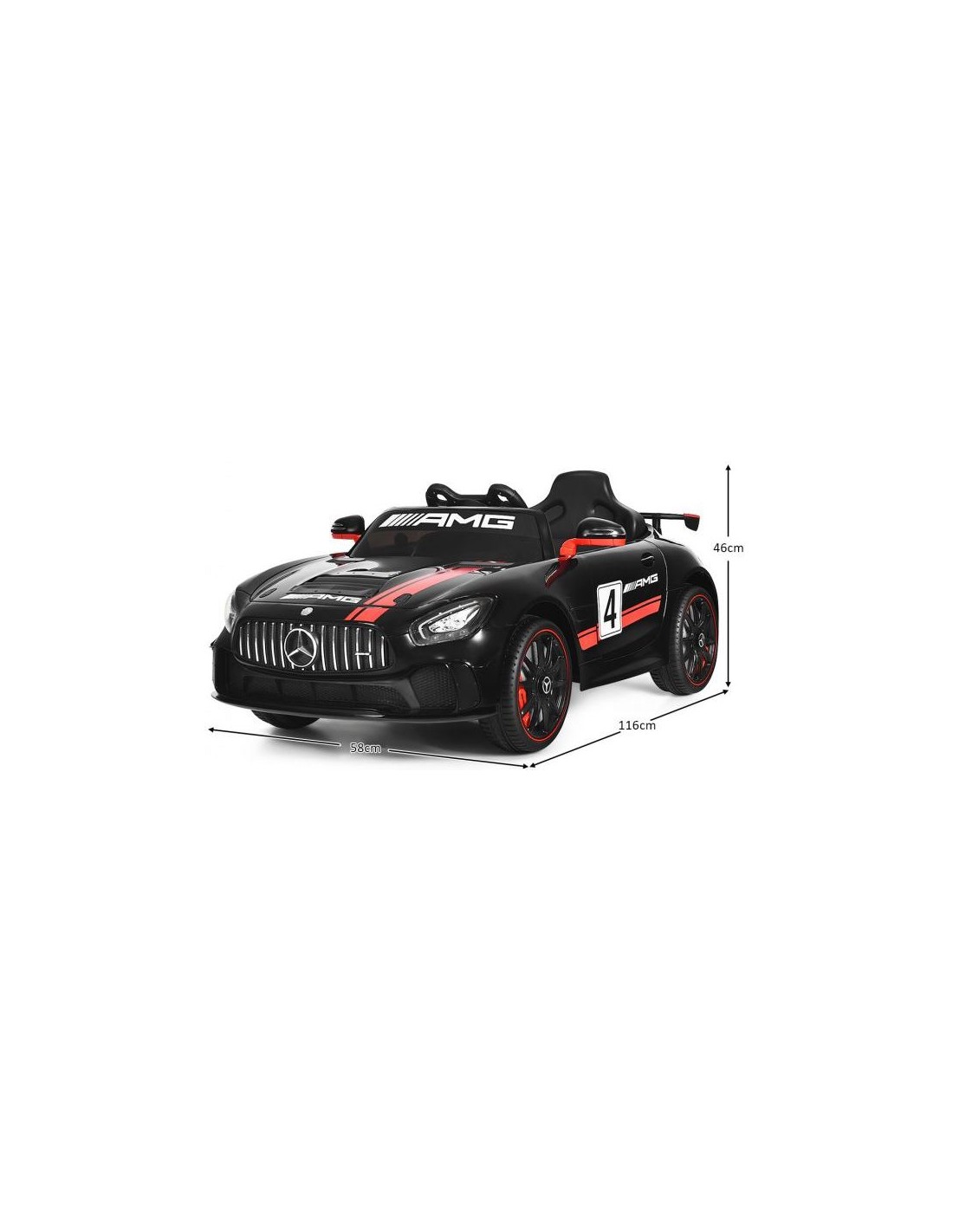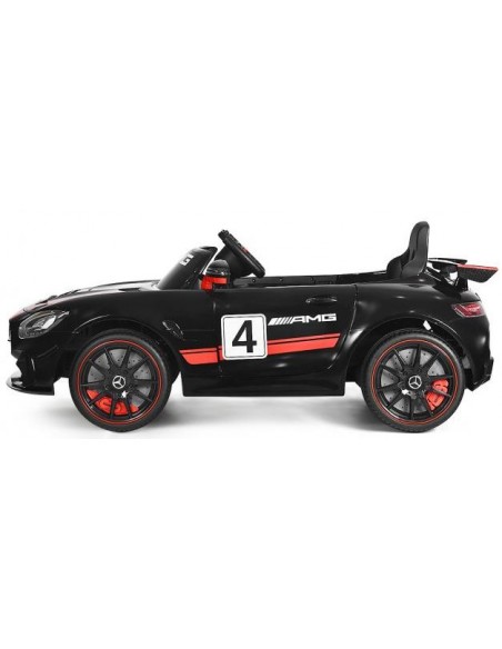Mercedes AMG elbil til 1 barn, udført i et design af sort kunststof. Elbilen måler 116 cm i længden og 58 cm i bredden og har plads til et barn i alderen 3 - 6 år. Bilen kommer med forældre fjernbetjening og kører på 12V batteri med en ladetid på cirka 8 - 12 timer for fuld opladning. Bilens hastighed er 3 - 5 km/t og kan holde batteritid i op til 45 min.