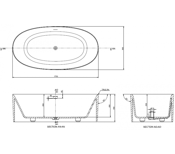 Badekar i et design fra Hollandske Ideavit. Badekaret er fremstillet i det solide materiale "Solid Surface", der ikke alene giver badeværelset et stilrent design, men samtidig er lækkert at røre ved. Badekaret måler 175 cm i længden og 88 cm i bredden (ydermål). Leveres med pop-up bundventil med cover og bundventil.