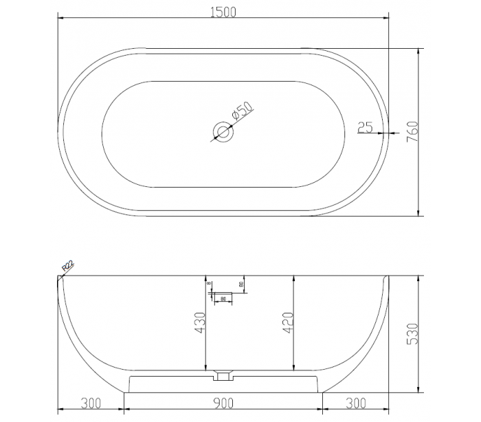 Badekar i et design fra Hollandske Ideavit. Badekaret er fremstillet i det solide materiale "Solid Surface", der ikke alene giver badeværelset et stilrent design, men samtidig er lækkert at røre ved. Badekaret måler 150 cm i længden og 76 cm i bredden (ydermål). Leveres med pop-up bundventil med cover og bundventil.