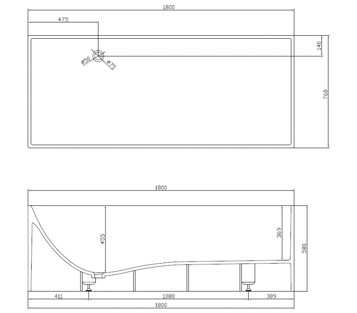 Badekar i et design fra Hollandske Ideavit. Badekaret er fremstillet i det solide materiale "Solid Surface", der ikke alene giver badeværelset et stilrent design, men samtidig er lækkert at røre ved. Badekaret måler 180 cm i længden og 76 cm i bredden (ydermål). Leveres med pop-up bundventil med cover og bundventil.
