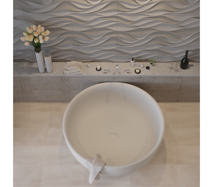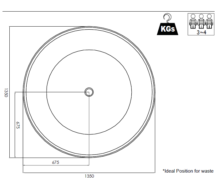 Badekar i et design fra Hollandske Ideavit. Badekaret er fremstillet i det solide materiale "Solid Surface", der ikke alene giver badeværelset et stilrent design, men samtidig er lækkert at røre ved. Badekaret måler 135 cm i diameter (ydermål). Leveres med pop-up bundventil med cover og bundventil.