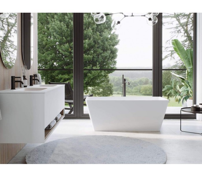 Adeon fritstående badekar 150 x 68 cm Senstone - Mat hvid