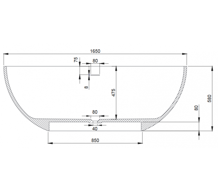 Badekar i et design fremstillet i det solide materiale "Senstone", der ikke alene giver badeværelset et stilrent design, men samtidig er lækkert at røre ved. Badekaret måler 160 cm i længden og 80 cm i bredden (ydermål). Leveres med pop-up bundventil med cover.