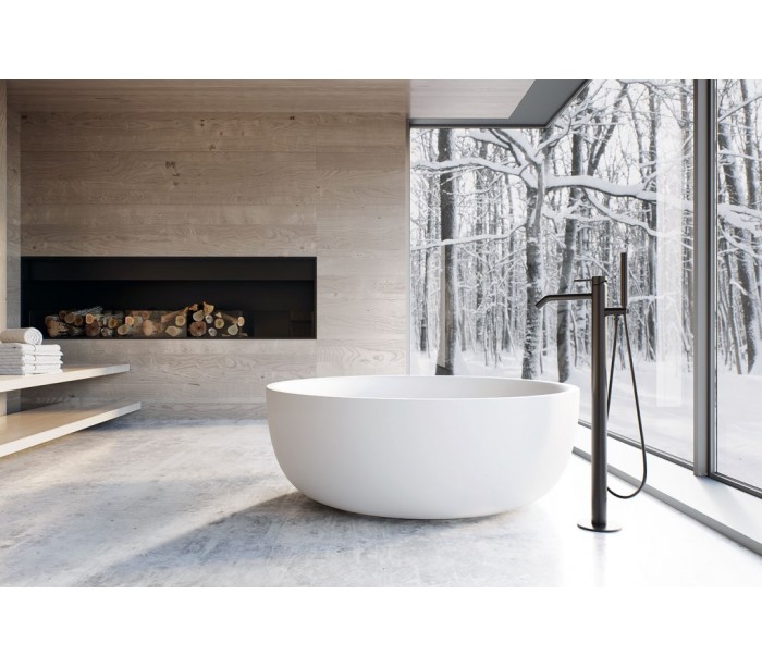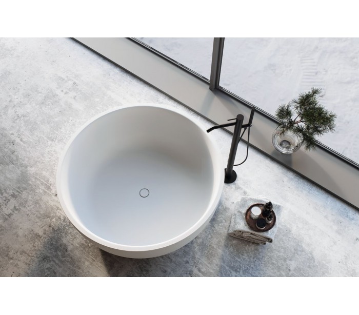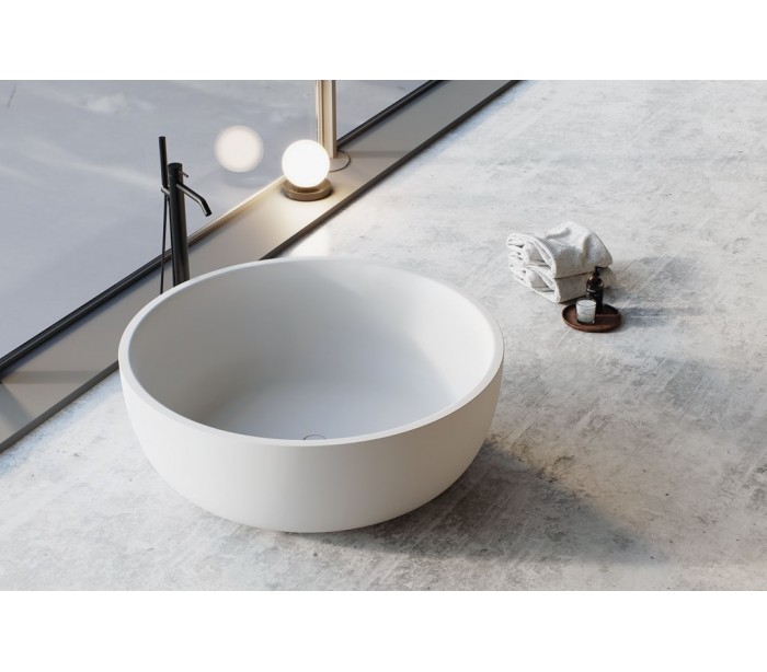 Biona fritstående badekar Ø135 cm Senstone - Mat hvid