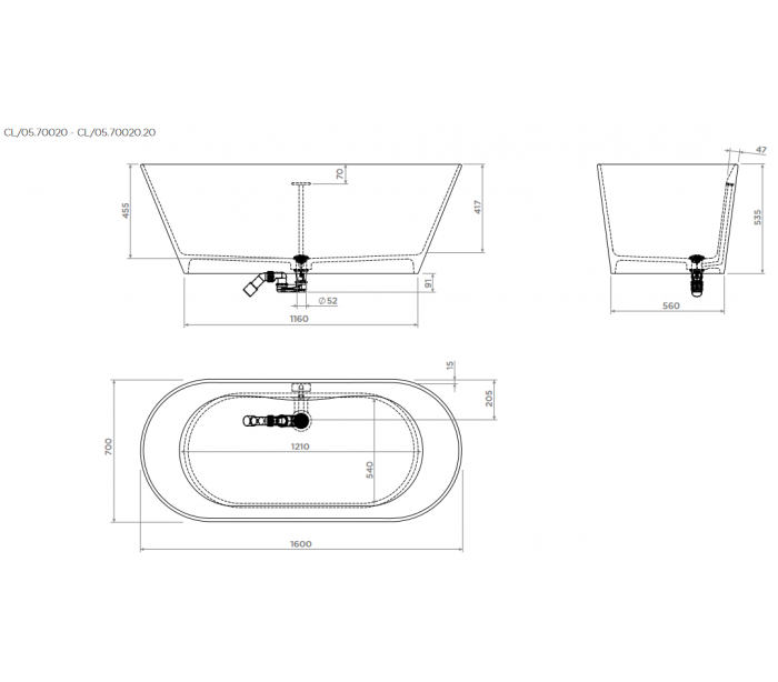 Badekar i et design fremstillet i mat hvid aluite, der ikke alene giver badeværelset et stilrent design, men samtidig er lækkert at røre ved. Badekaret måler 160 cm i længden og 70 cm i bredden (ydermål). Leveres med pop-up bundventil.