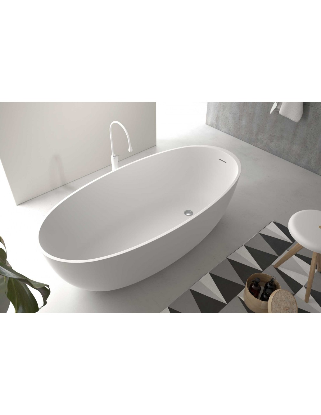 Oval fritstående badekar 170 x 80 cm Solid surface - Mat hvid
