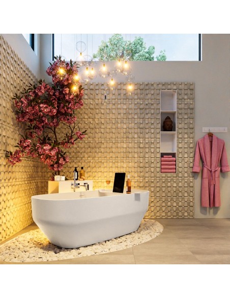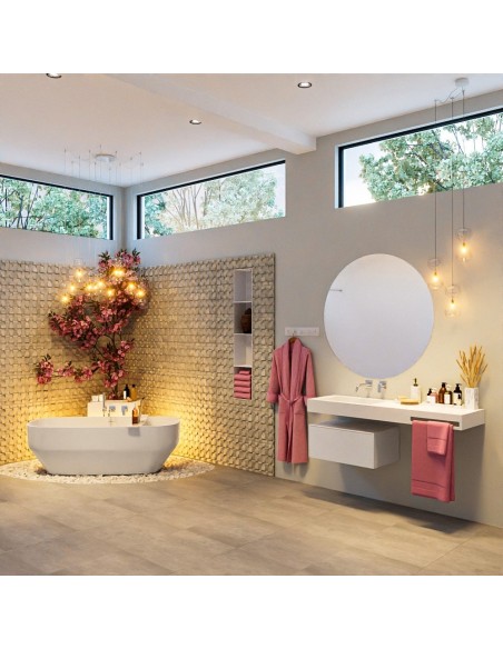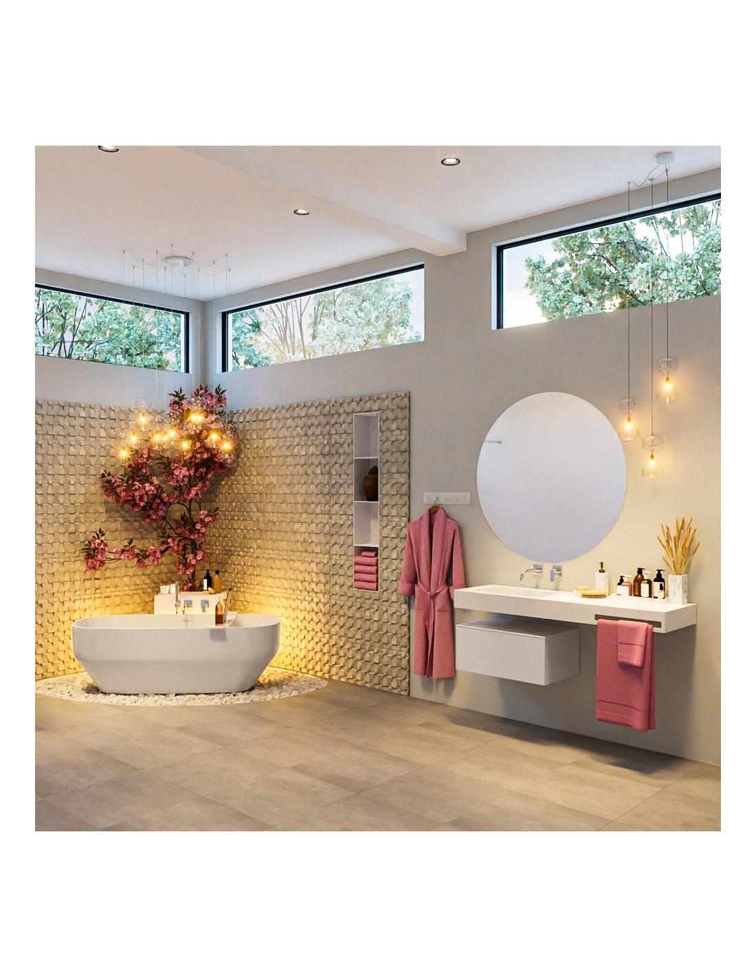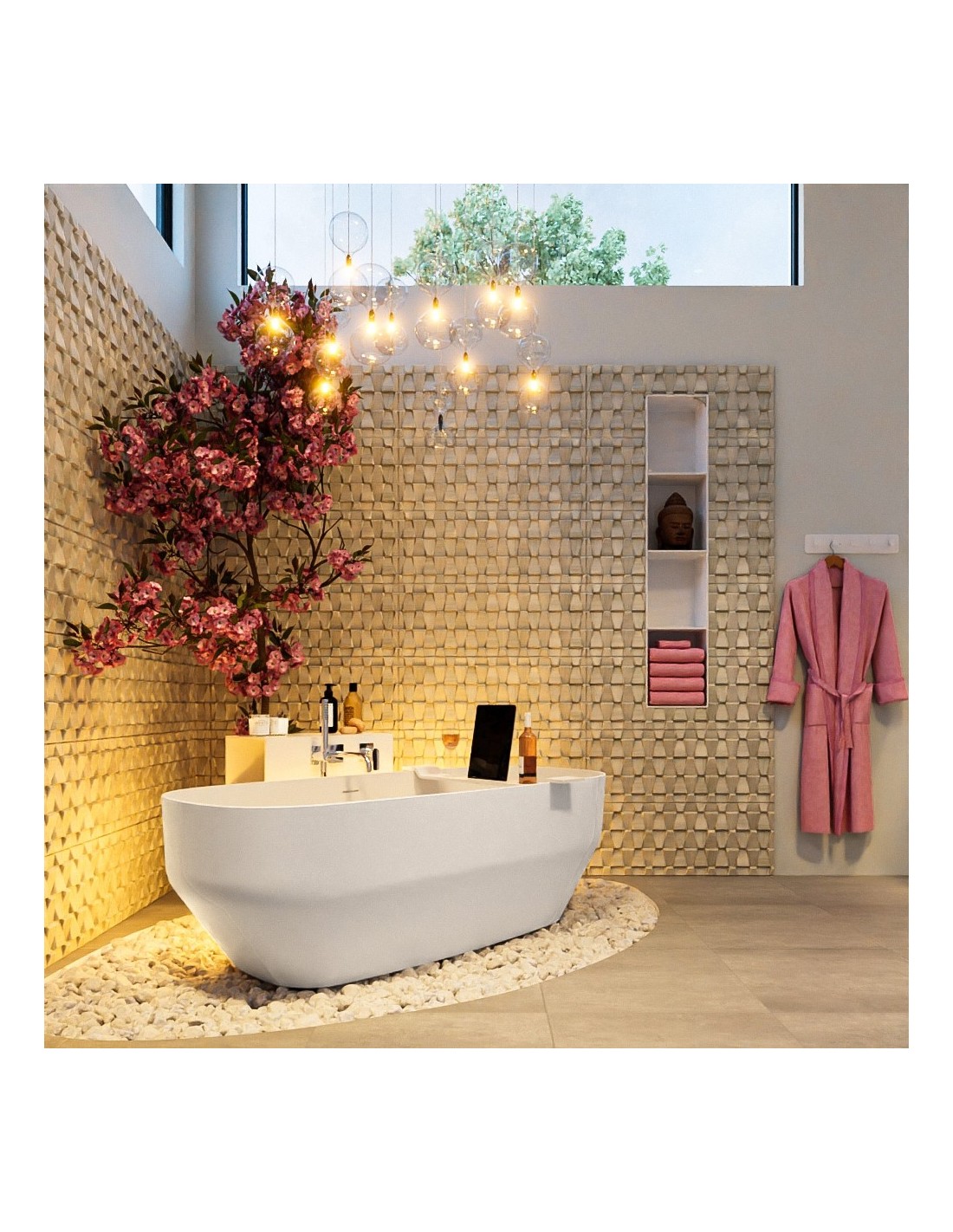 Mondiaz tilbyder et spændende og lækkert sortiment af badeværelsesindretning til attraktive priser. Mondiaz er specialister indenfor indretning af badeværelser, og tilbyder næsten et komplet sortiment, så som badeværelsesmøbler, moderne håndvaske og badekar, samt luksuriøse spejle med mere. Fra Mondiaz finder du badeværelsesmøbler i forskellige stilarter, herunder badeværelsesmøbler fremstillet i massiv træ, samt i solid surface og marmor. Indretning til badeværelset i høj kvalitet til attraktive priser er hver Mondiaz står for.