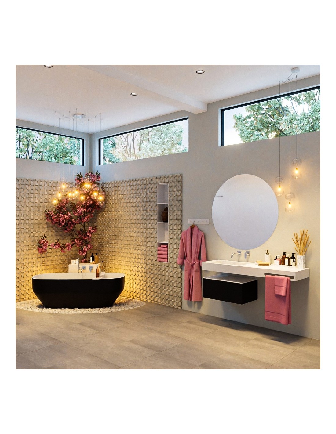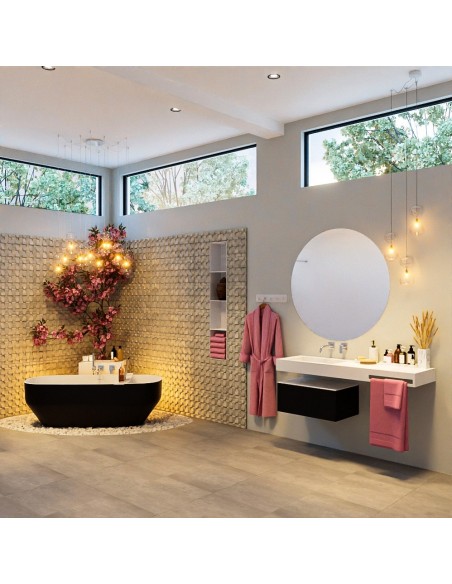 Mondiaz tilbyder et spændende og lækkert sortiment af badeværelsesindretning til attraktive priser. Mondiaz er specialister indenfor indretning af badeværelser, og tilbyder næsten et komplet sortiment, så som badeværelsesmøbler, moderne håndvaske og badekar, samt luksuriøse spejle med mere. Fra Mondiaz finder du badeværelsesmøbler i forskellige stilarter, herunder badeværelsesmøbler fremstillet i massiv træ, samt i solid surface og marmor. Indretning til badeværelset i høj kvalitet til attraktive priser er hver Mondiaz står for.