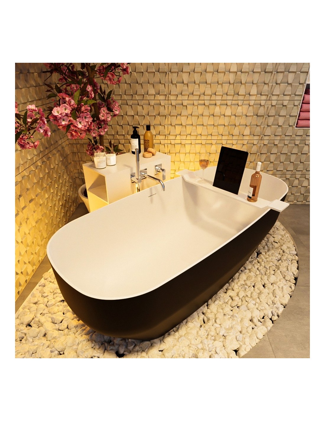 STONE fritstående badekar 170 x 75 cm Solid surface - Talkum/Sort
