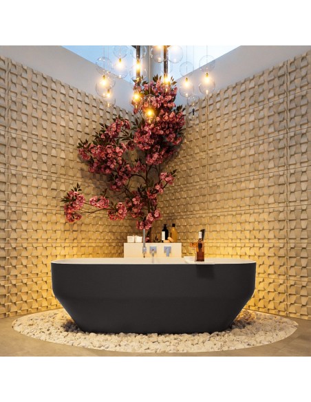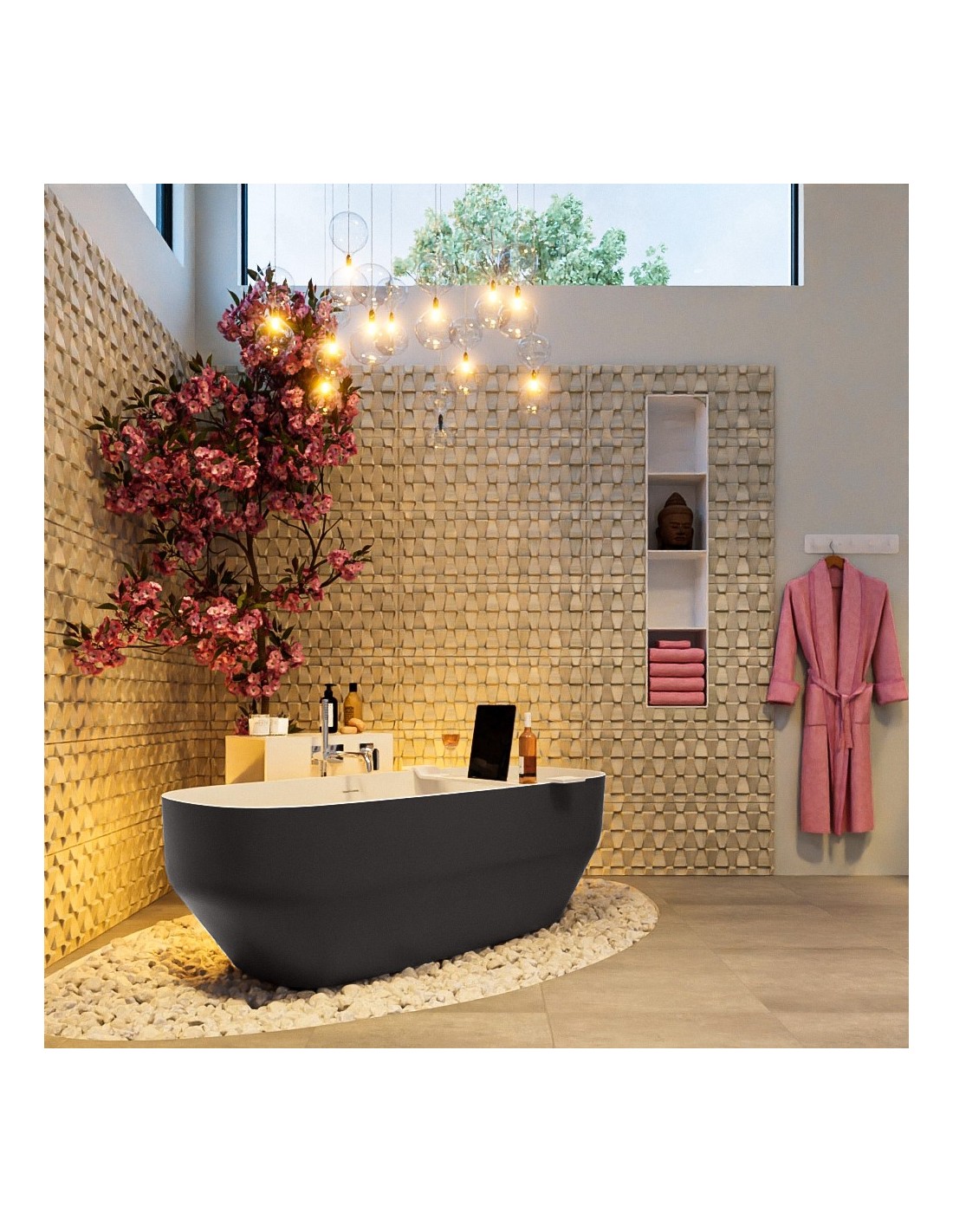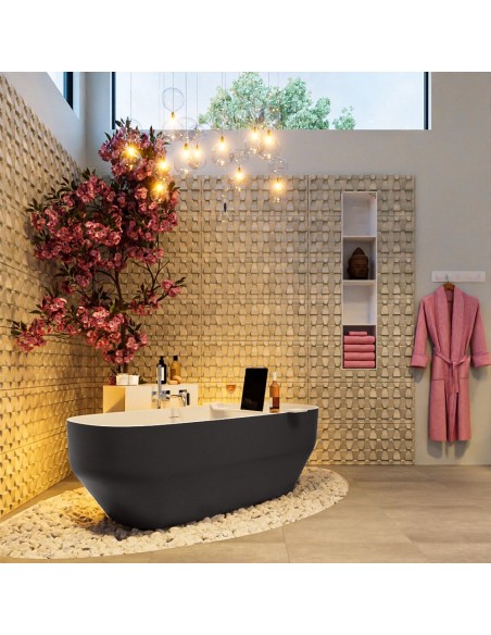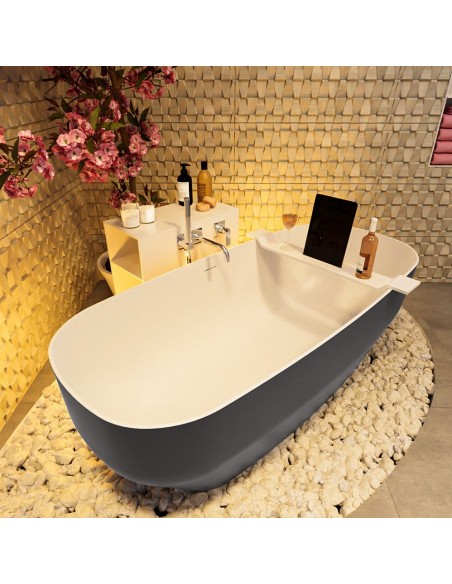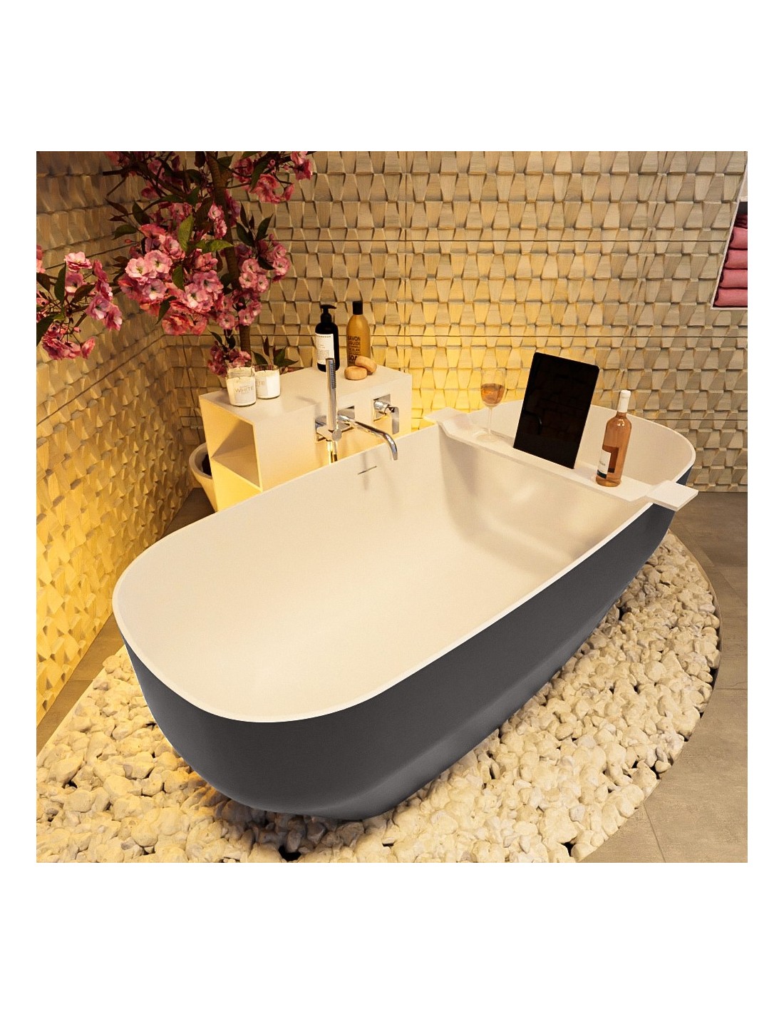 STONE fritstående badekar 170 x 75 cm Solid surface - Talkum/Mørkegrå