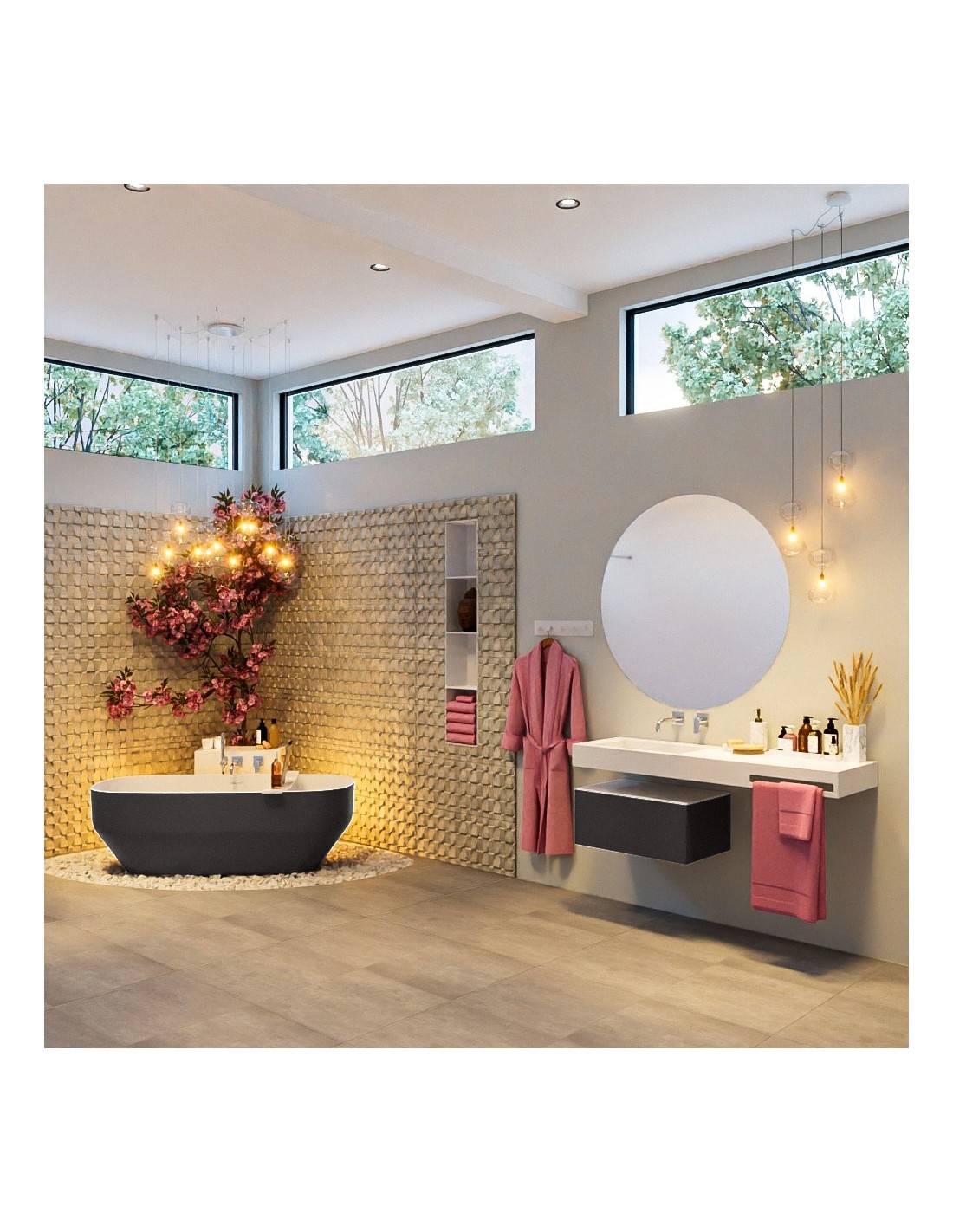 Mondiaz tilbyder et spændende og lækkert sortiment af badeværelsesindretning til attraktive priser. Mondiaz er specialister indenfor indretning af badeværelser, og tilbyder næsten et komplet sortiment, så som badeværelsesmøbler, moderne håndvaske og badekar, samt luksuriøse spejle med mere. Fra Mondiaz finder du badeværelsesmøbler i forskellige stilarter, herunder badeværelsesmøbler fremstillet i massiv træ, samt i solid surface og marmor. Indretning til badeværelset i høj kvalitet til attraktive priser er hver Mondiaz står for.