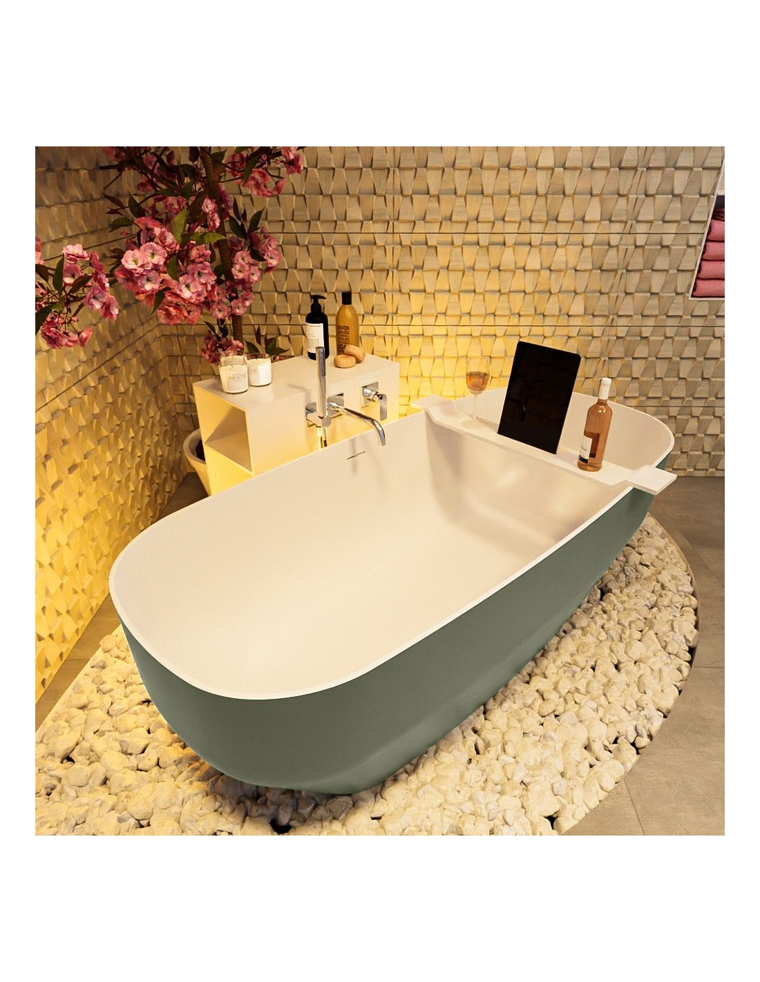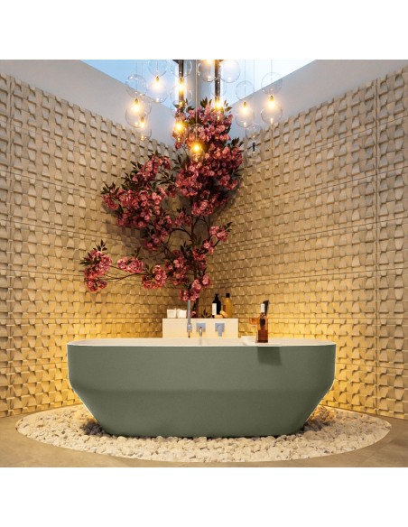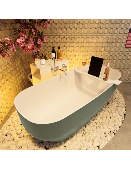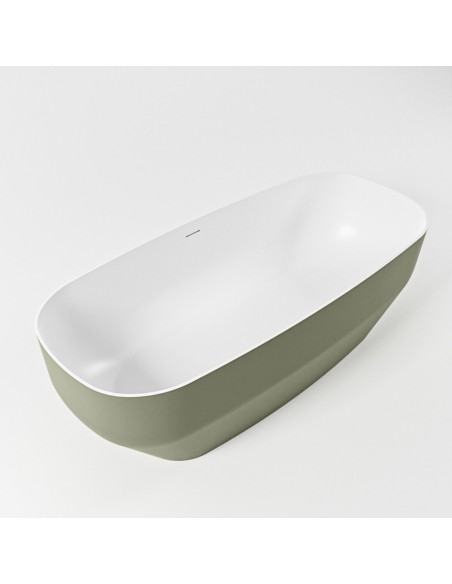 STONE fritstående badekar 170 x 75 cm Solid surface - Talkum/Armygrøn