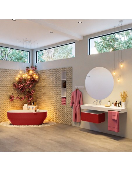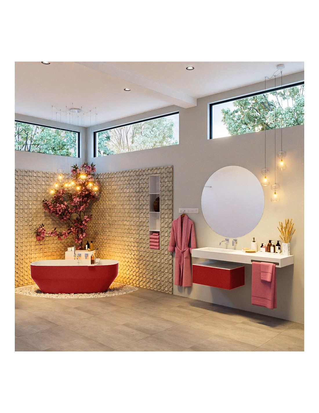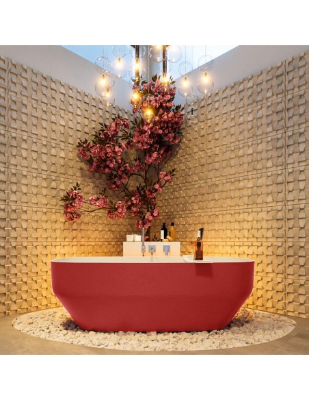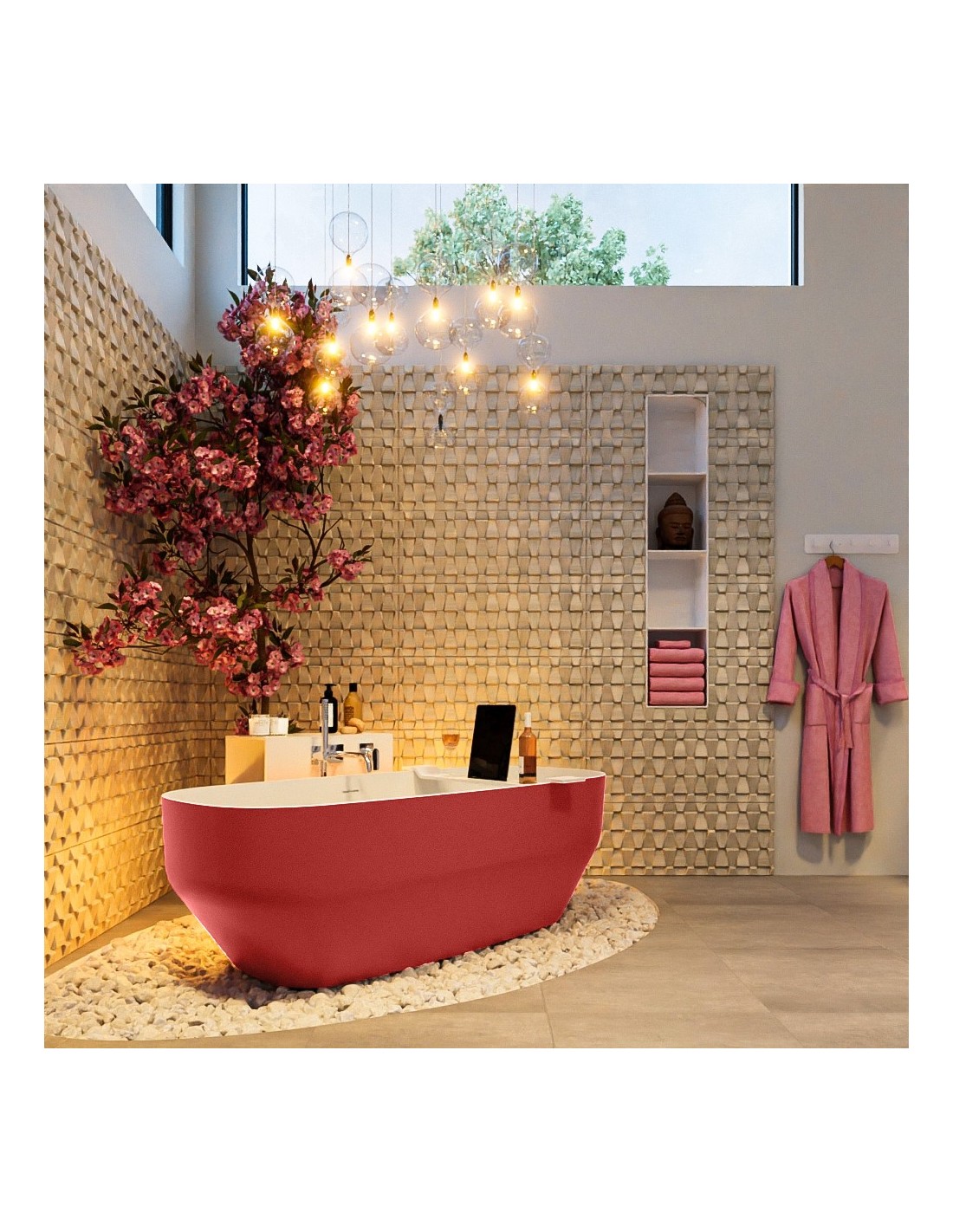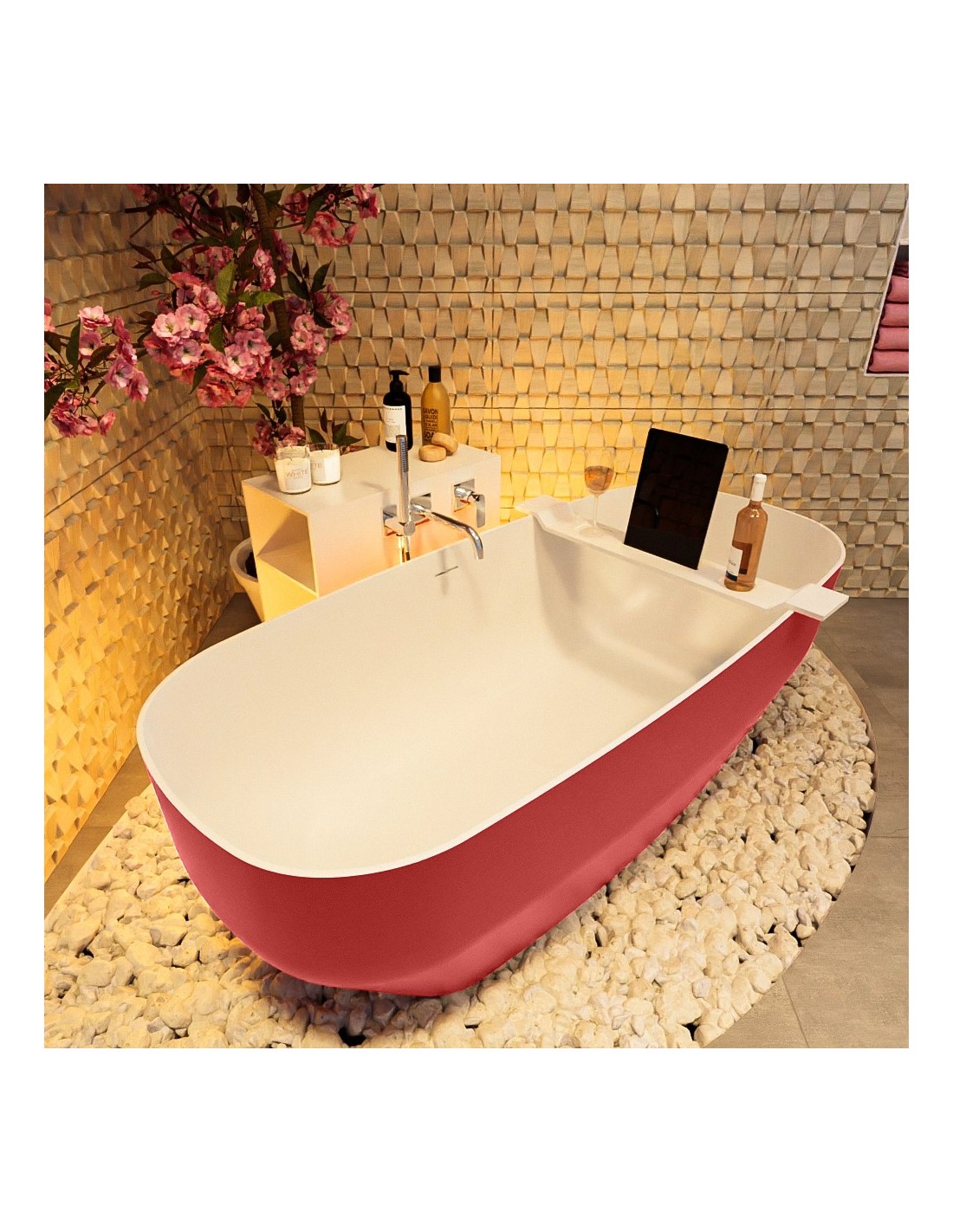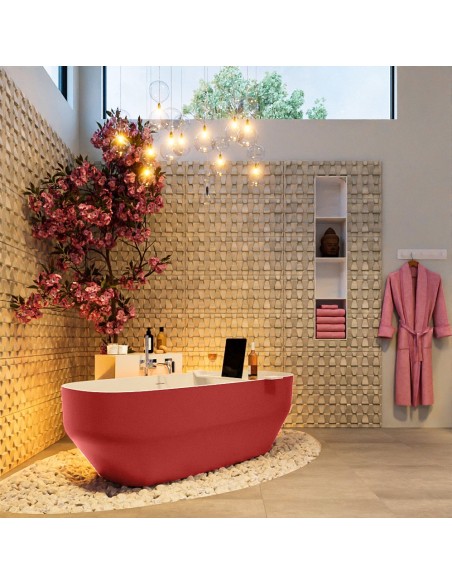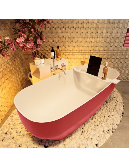 STONE fritstående badekar 170 x 75 cm Solid surface - Talkum/Rød