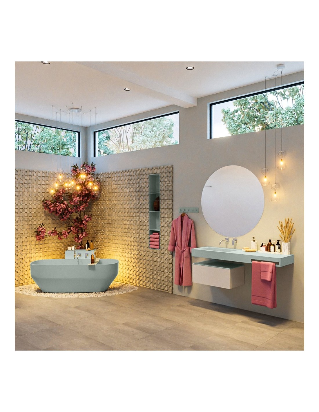 Mondiaz tilbyder et spændende og lækkert sortiment af badeværelsesindretning til attraktive priser. Mondiaz er specialister indenfor indretning af badeværelser, og tilbyder næsten et komplet sortiment, så som badeværelsesmøbler, moderne håndvaske og badekar, samt luksuriøse spejle med mere. Fra Mondiaz finder du badeværelsesmøbler i forskellige stilarter, herunder badeværelsesmøbler fremstillet i massiv træ, samt i solid surface og marmor. Indretning til badeværelset i høj kvalitet til attraktive priser er hver Mondiaz står for.