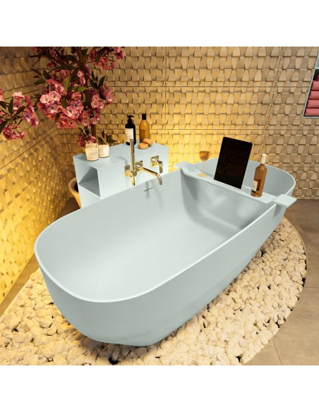 STONE fritstående badekar 170 x 75 cm Solid surface - Svag grøn