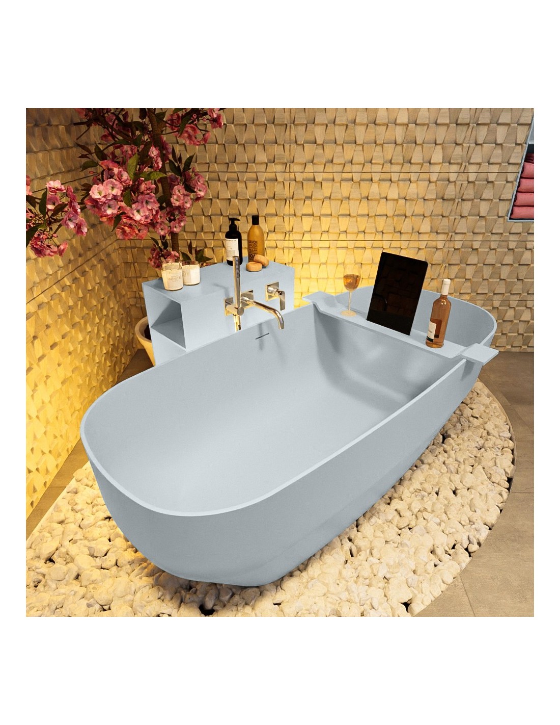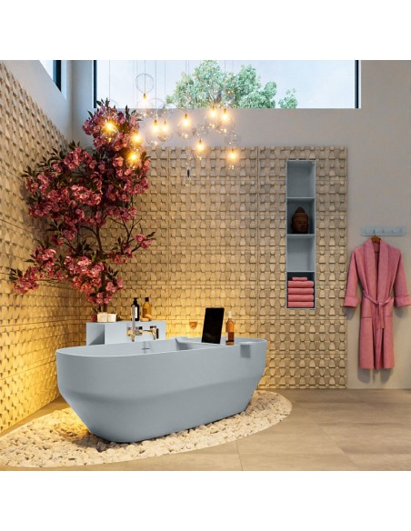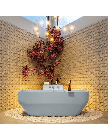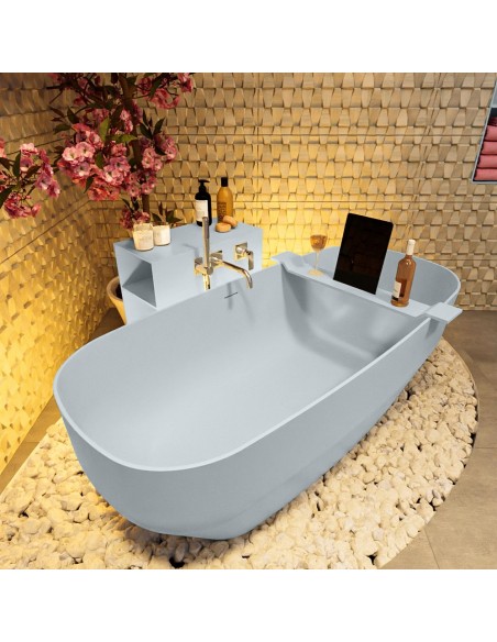 STONE fritstående badekar 170 x 75 cm Solid surface - Babyblå