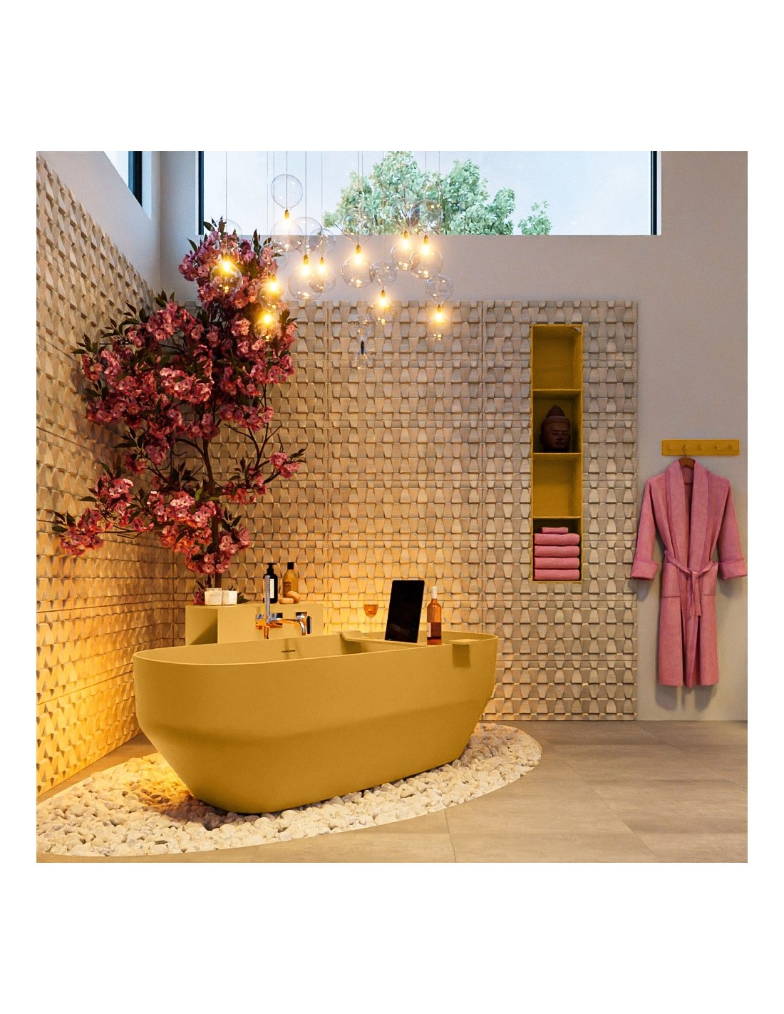STONE fritstående badekar 170 x 75 cm Solid surface - Okker