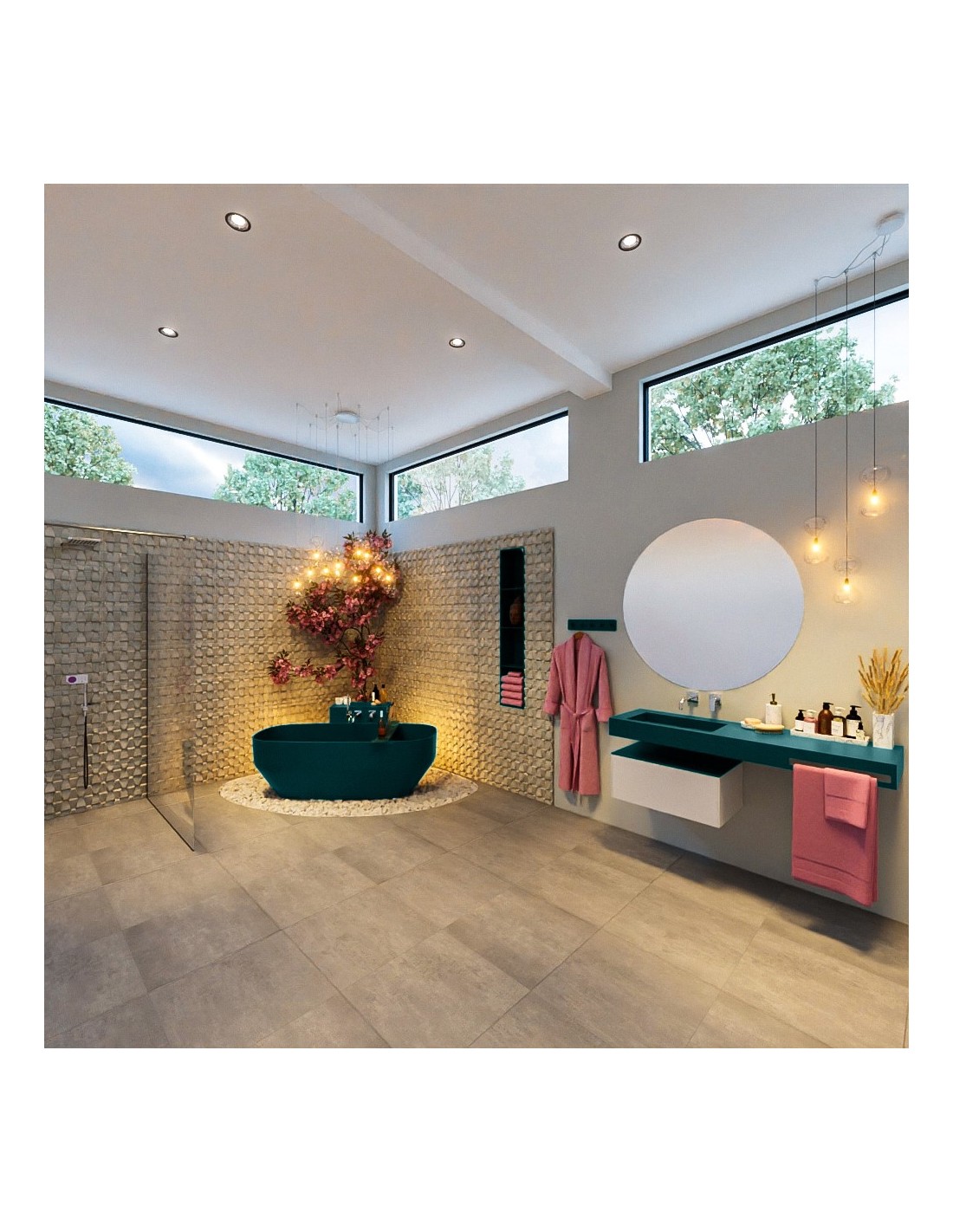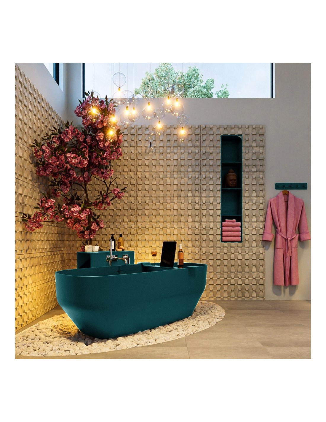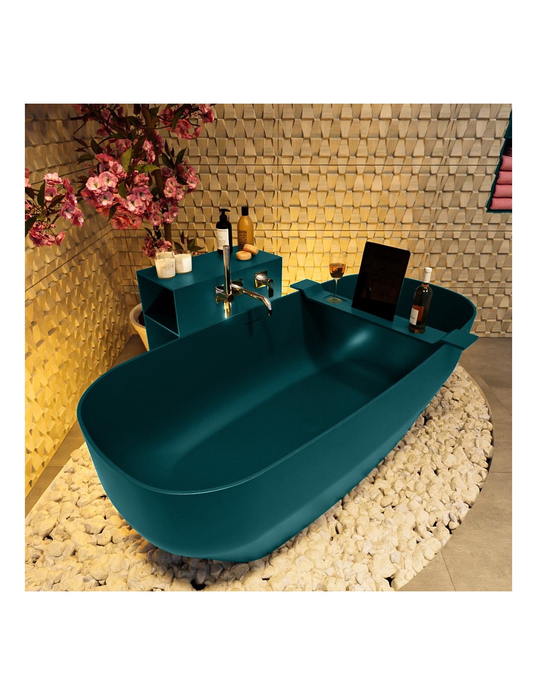 STONE fritstående badekar 170 x 75 cm Solid surface - Petrolium