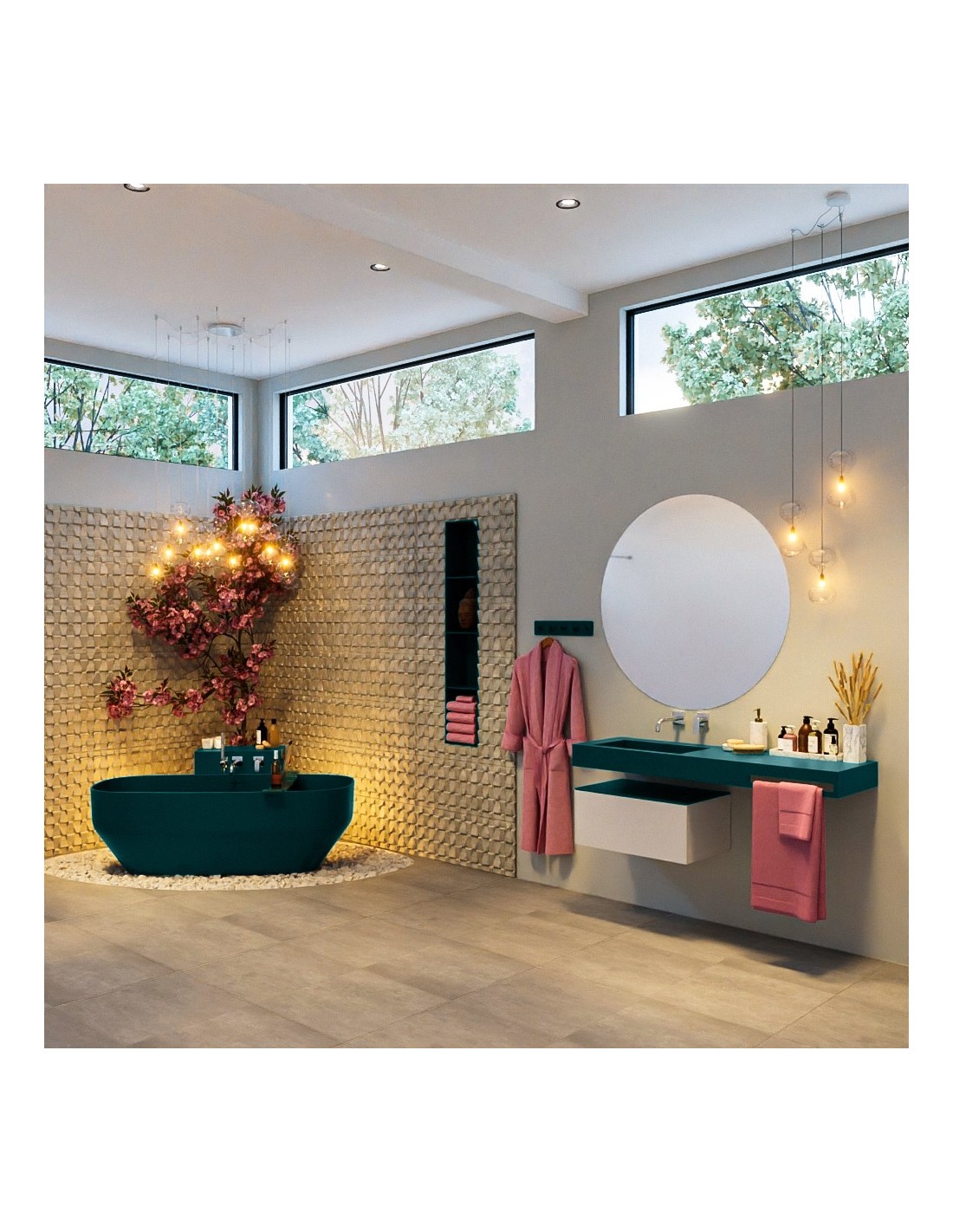 Mondiaz tilbyder et spændende og lækkert sortiment af badeværelsesindretning til attraktive priser. Mondiaz er specialister indenfor indretning af badeværelser, og tilbyder næsten et komplet sortiment, så som badeværelsesmøbler, moderne håndvaske og badekar, samt luksuriøse spejle med mere. Fra Mondiaz finder du badeværelsesmøbler i forskellige stilarter, herunder badeværelsesmøbler fremstillet i massiv træ, samt i solid surface og marmor. Indretning til badeværelset i høj kvalitet til attraktive priser er hver Mondiaz står for.