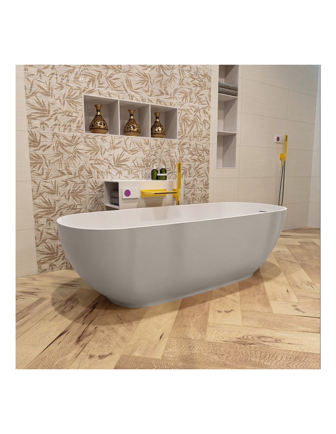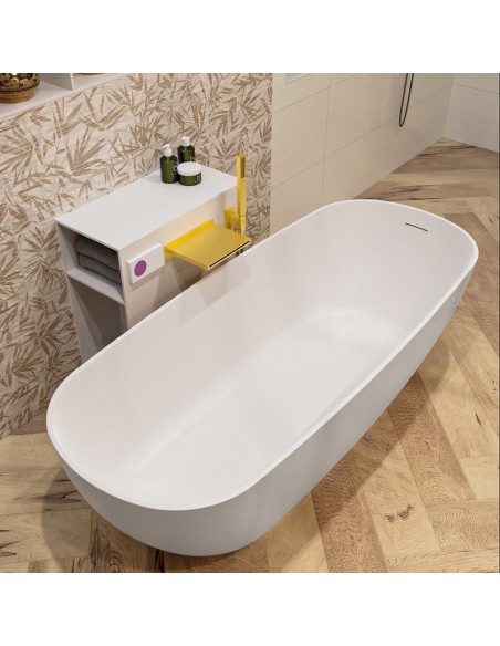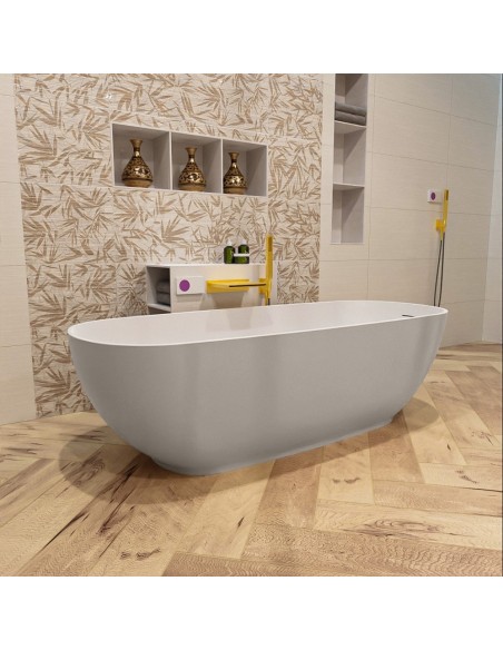 ROCK fritstående badekar 170 x 70 cm Solid surface - Talkum/Linned