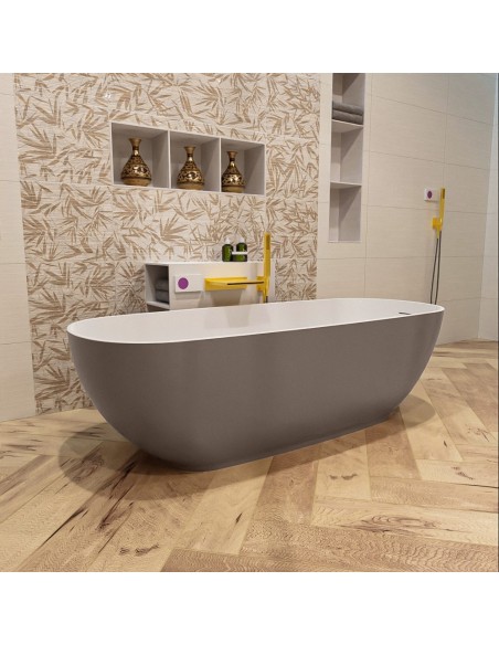 ROCK fritstående badekar 170 x 70 cm Solid surface - Talkum/Røg