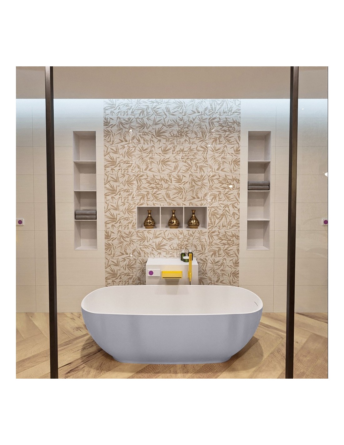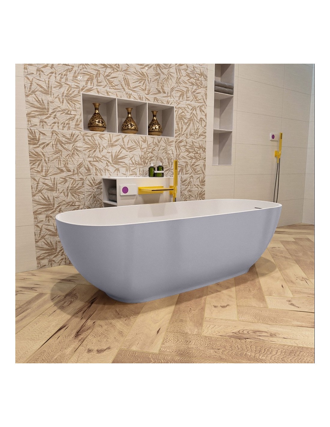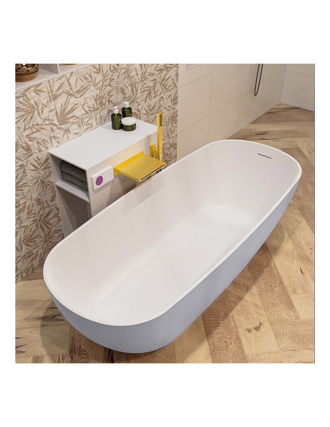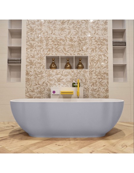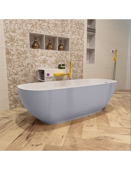 ROCK fritstående badekar 170 x 70 cm Solid surface - Talkum/Svag grå