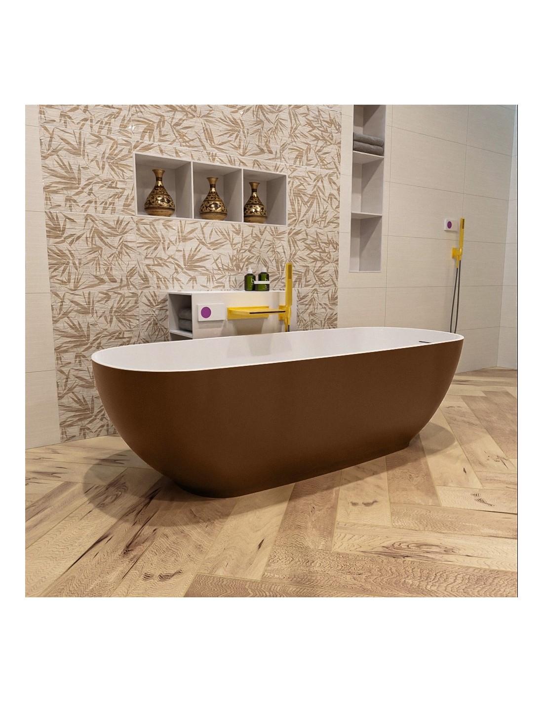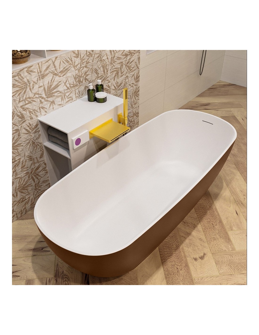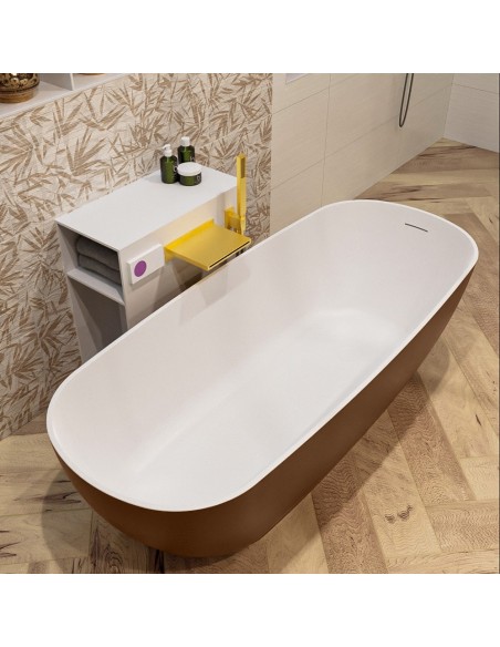 ROCK fritstående badekar 170 x 70 cm Solid surface - Talkum/Rustbrun