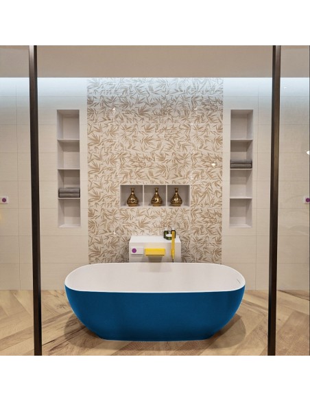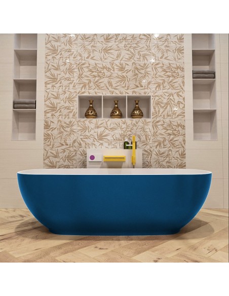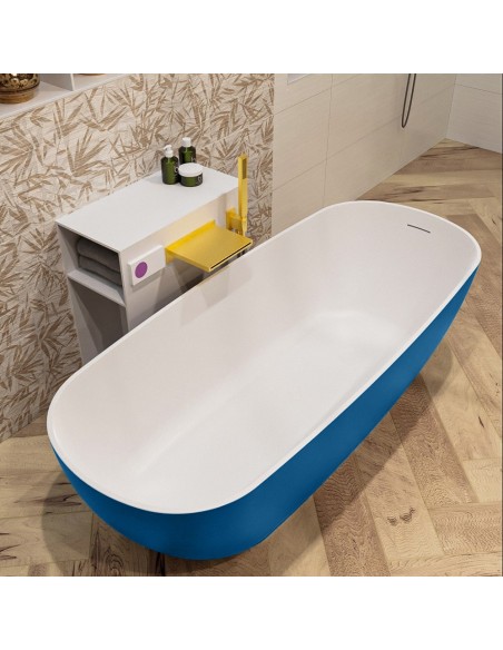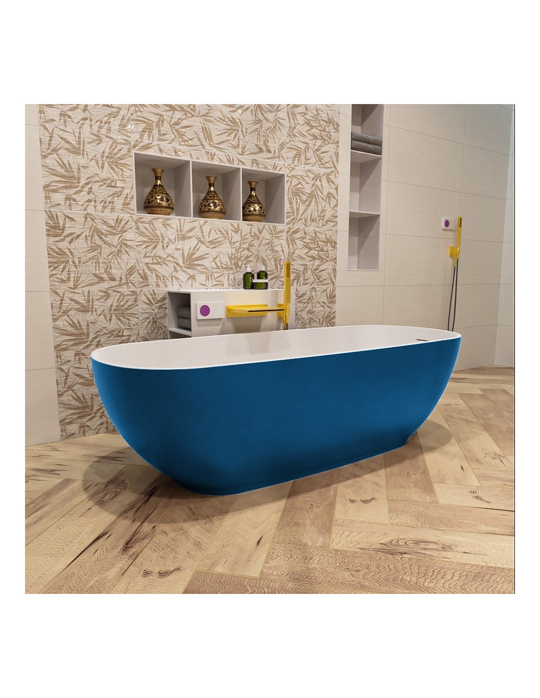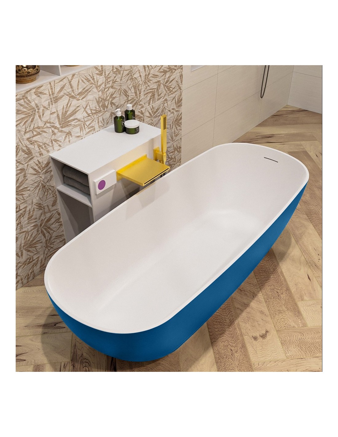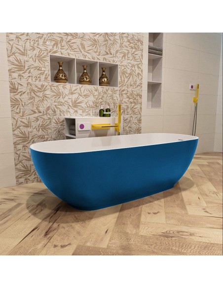 ROCK fritstående badekar 170 x 70 cm Solid surface - Talkum/Jeansblå