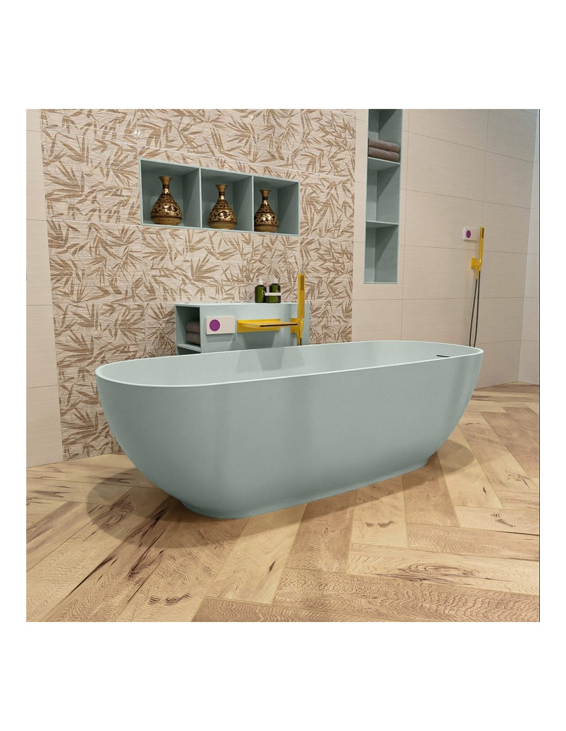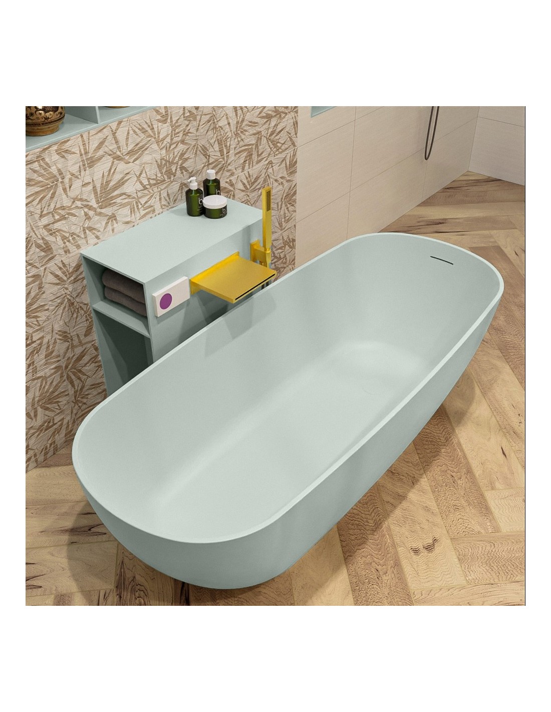 ROCK fritstående badekar 170 x 70 cm Solid surface - Svag grøn