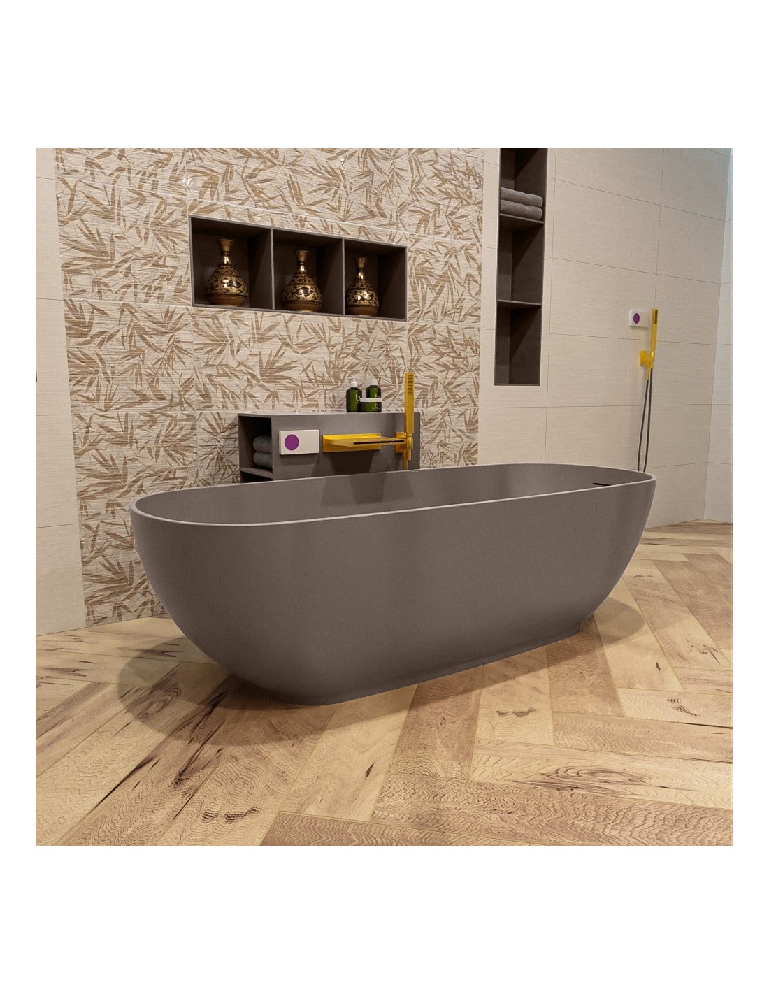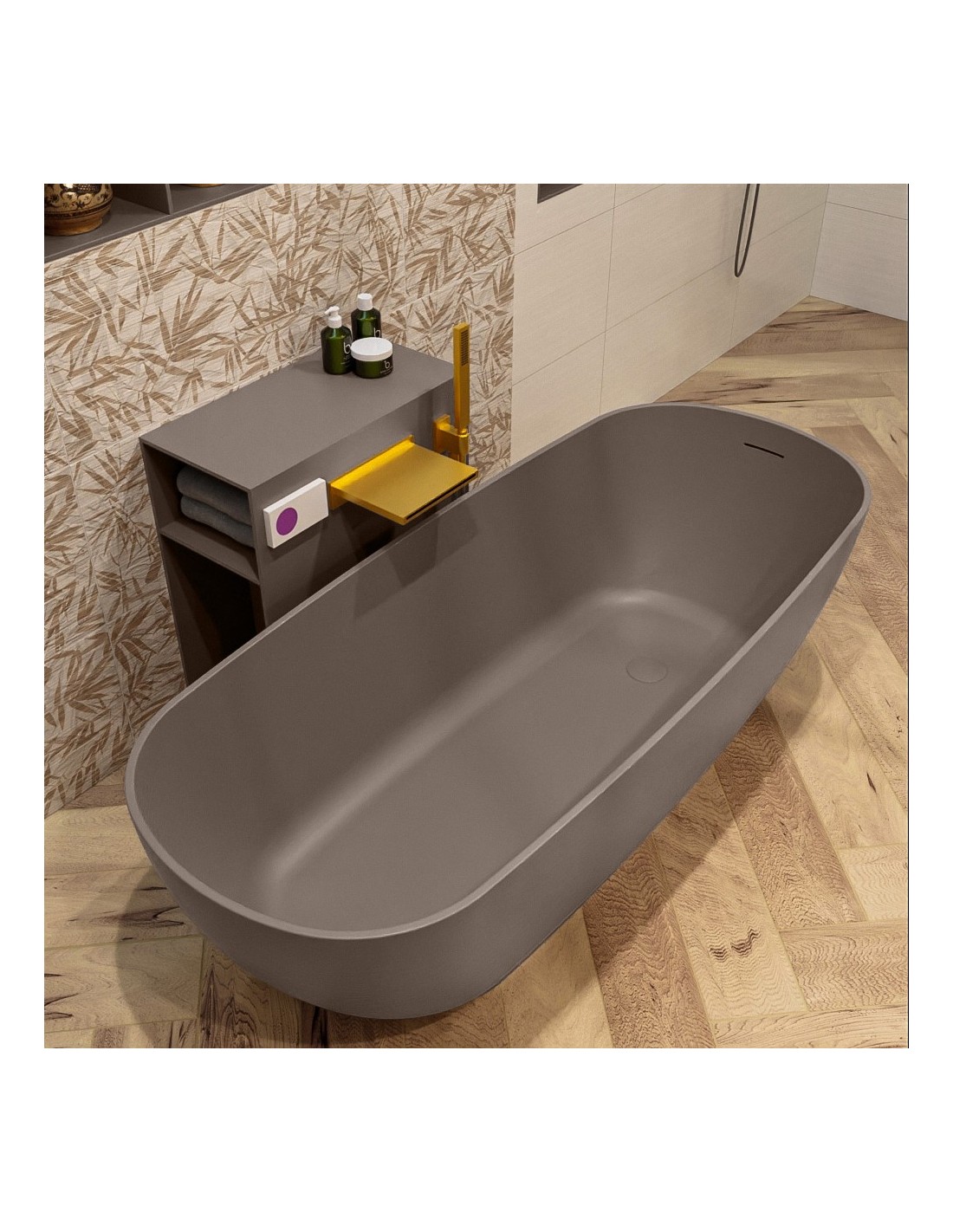 ROCK fritstående badekar 170 x 70 cm Solid surface - Røg