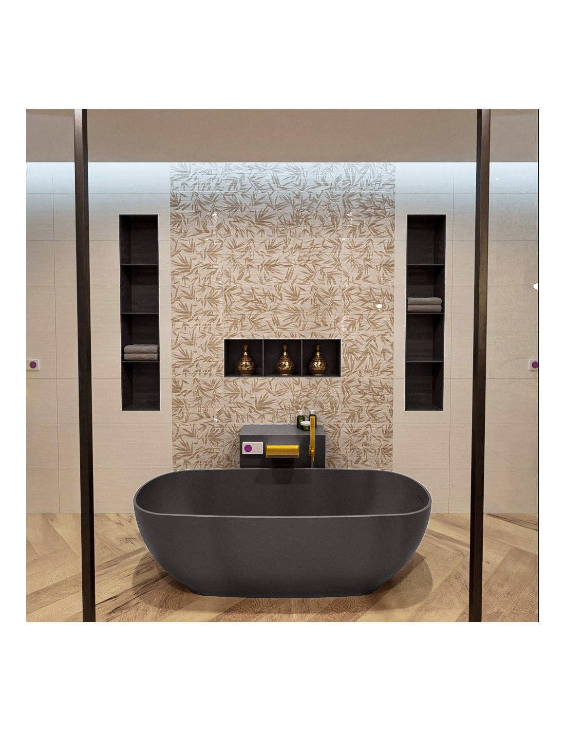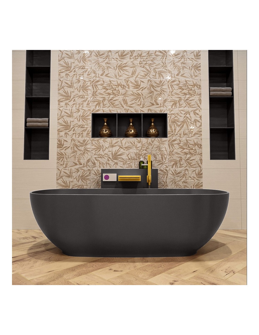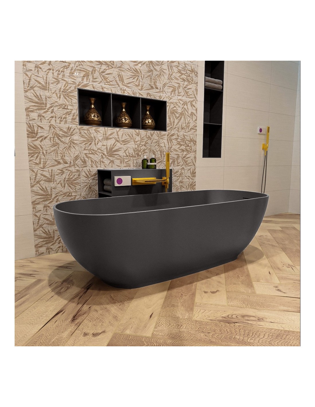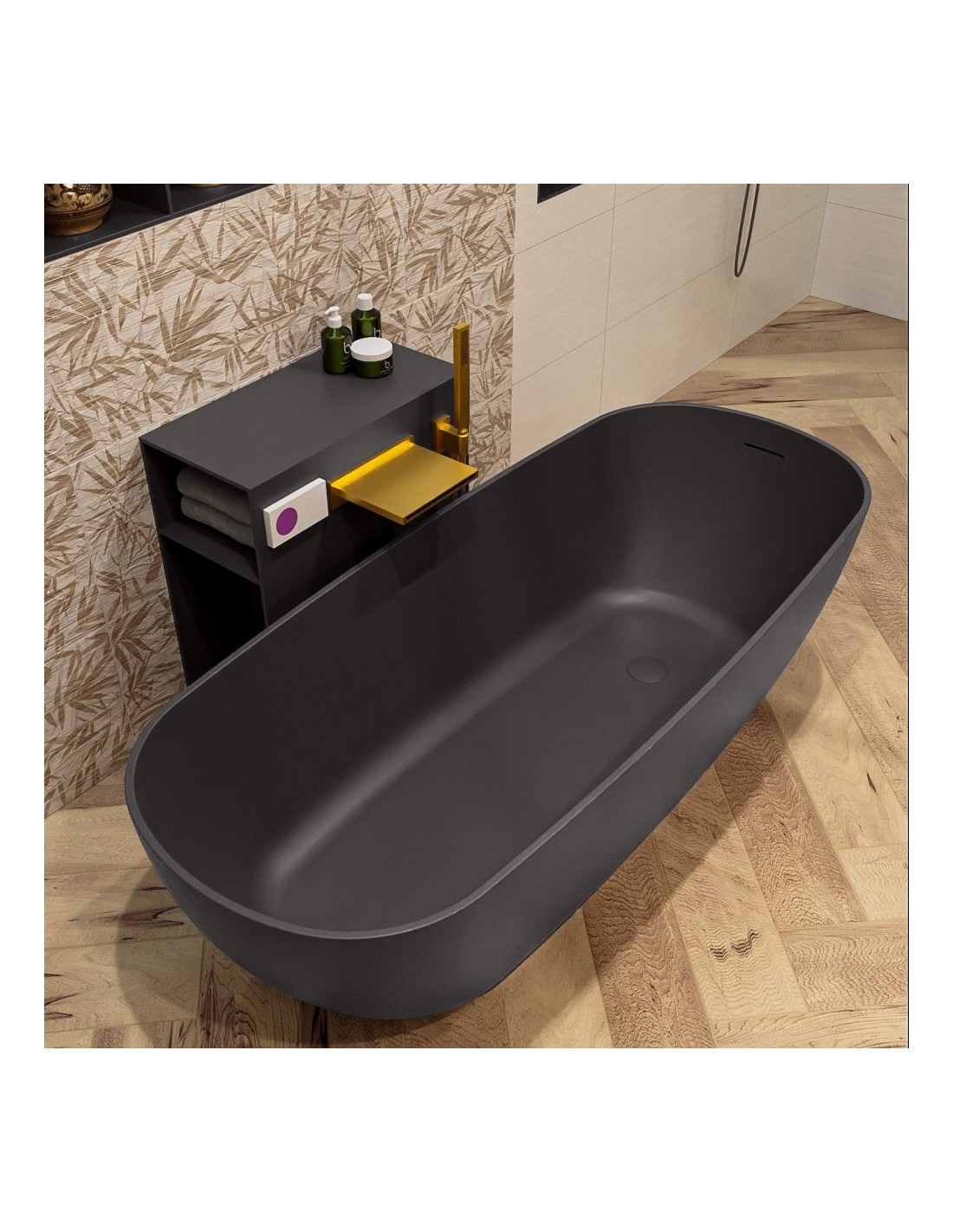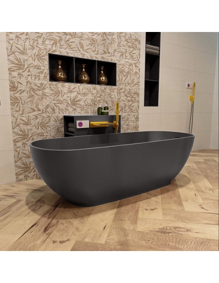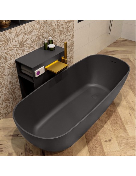 ROCK fritstående badekar 170 x 70 cm Solid surface - Mørkegrå