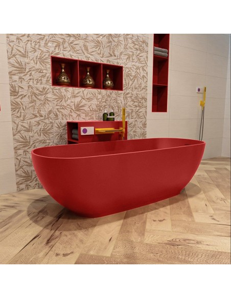 ROCK fritstående badekar 170 x 70 cm Solid surface - Rød
