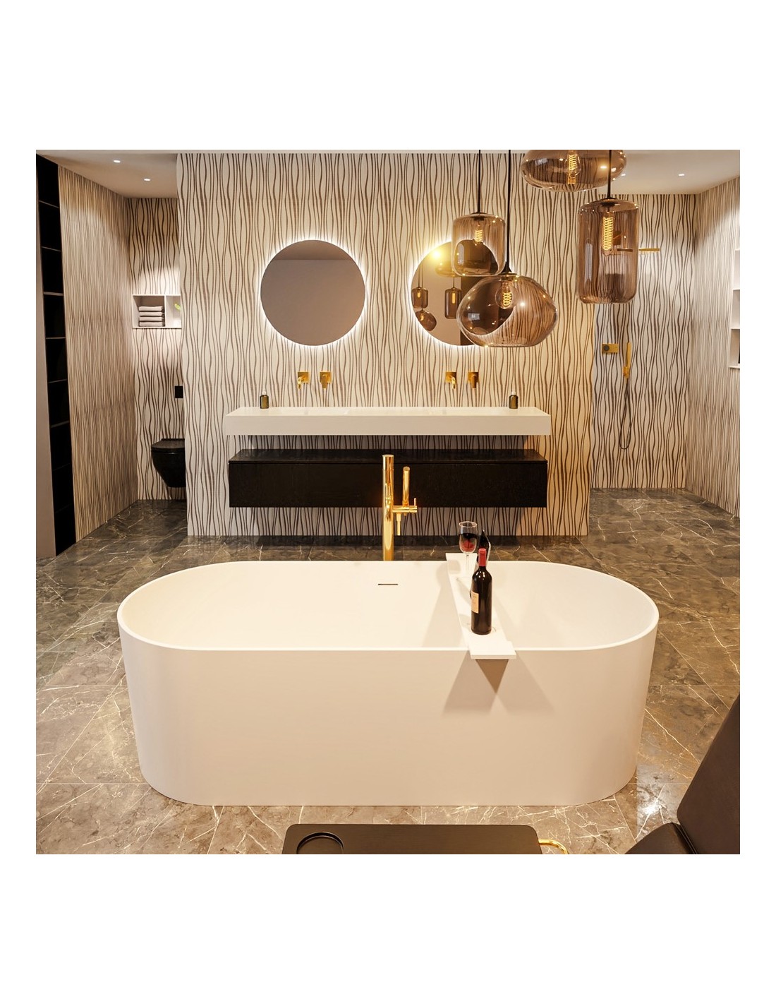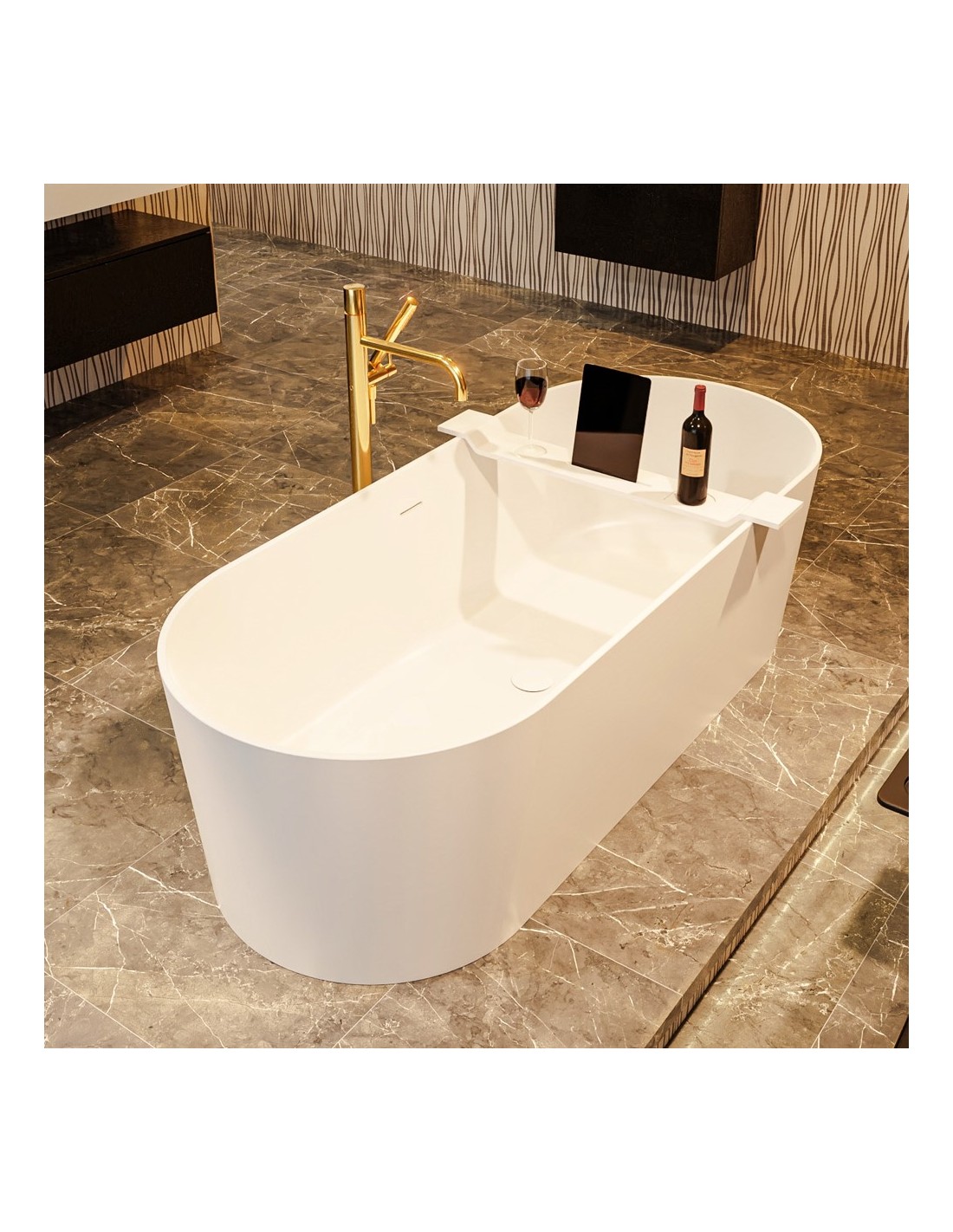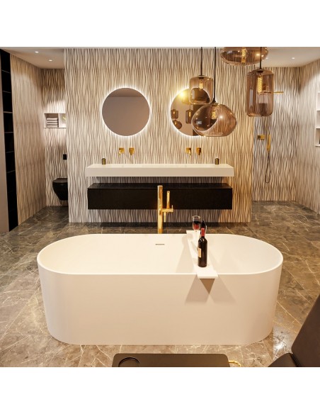 NOBLE fritstående badekar 180 x 75 cm Solid surface - Talkum