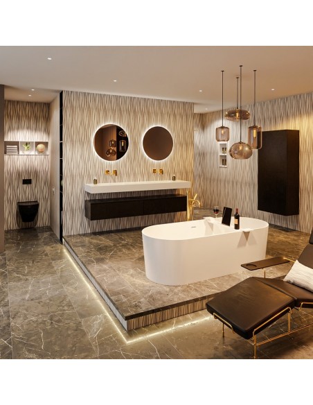 Mondiaz tilbyder et spændende og lækkert sortiment af badeværelsesindretning til attraktive priser. Mondiaz er specialister indenfor indretning af badeværelser, og tilbyder næsten et komplet sortiment, så som badeværelsesmøbler, moderne håndvaske og badekar, samt luksuriøse spejle med mere. Fra Mondiaz finder du badeværelsesmøbler i forskellige stilarter, herunder badeværelsesmøbler fremstillet i massiv træ, samt i solid surface og marmor. Indretning til badeværelset i høj kvalitet til attraktive priser er hver Mondiaz står for.