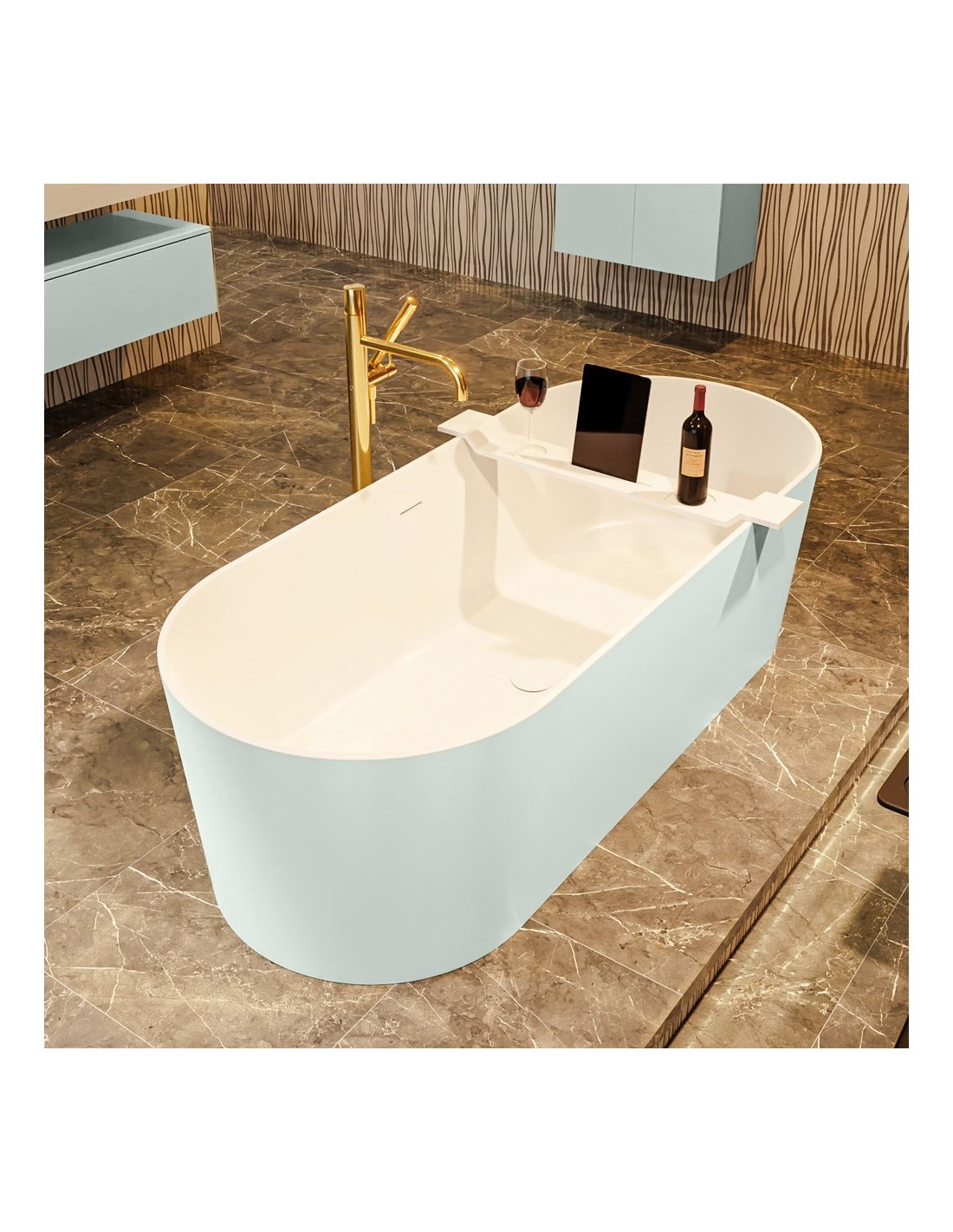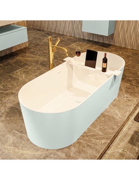 NOBLE fritstående badekar 180 x 75 cm Solid surface - Talkum/Svag grøn