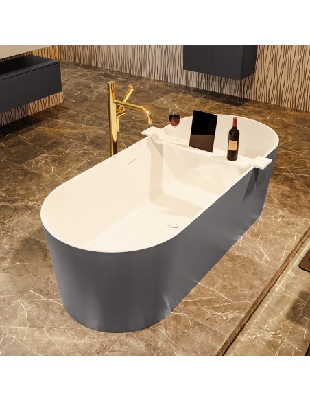 NOBLE fritstående badekar 180 x 75 cm Solid surface - Talkum/Mørkegrå