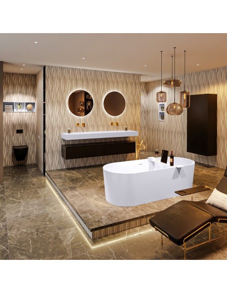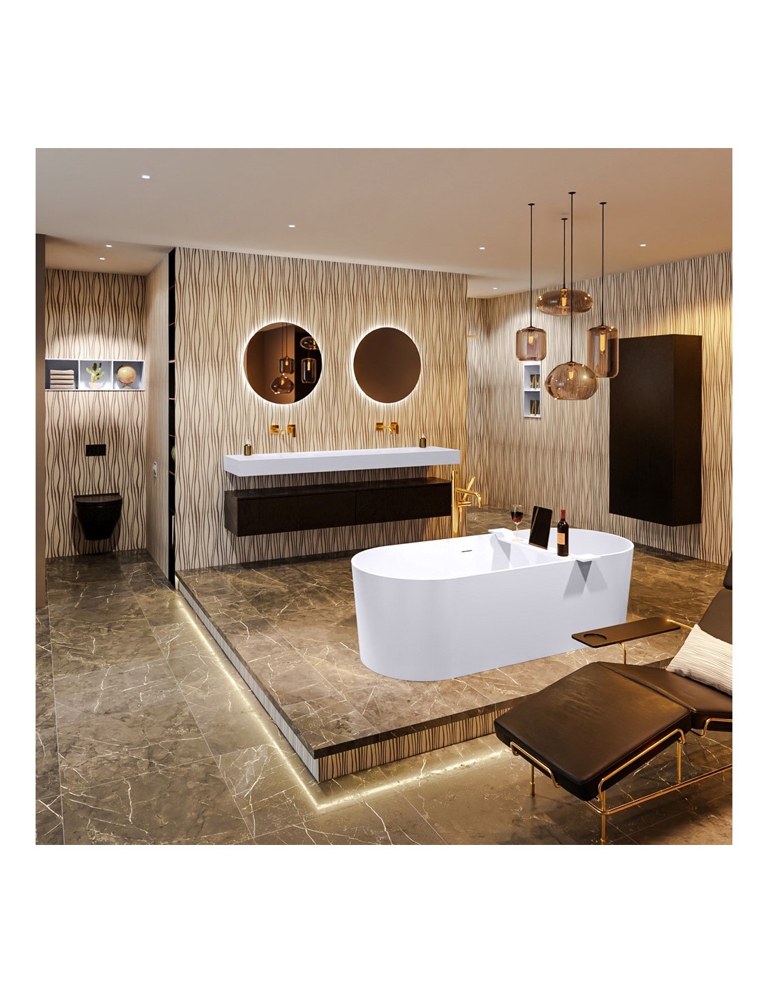 NOBLE fritstående badekar i et moderne og stilrent design, fremstillet i det solide materiale "Solid Surface", der ikke alene giver badeværelset et stilrent design, men samtidig er lækkert at røre ved. Badekaret måler 180 cm i længden og 75 cm i bredden (ydermål). Badekaret har overløb.