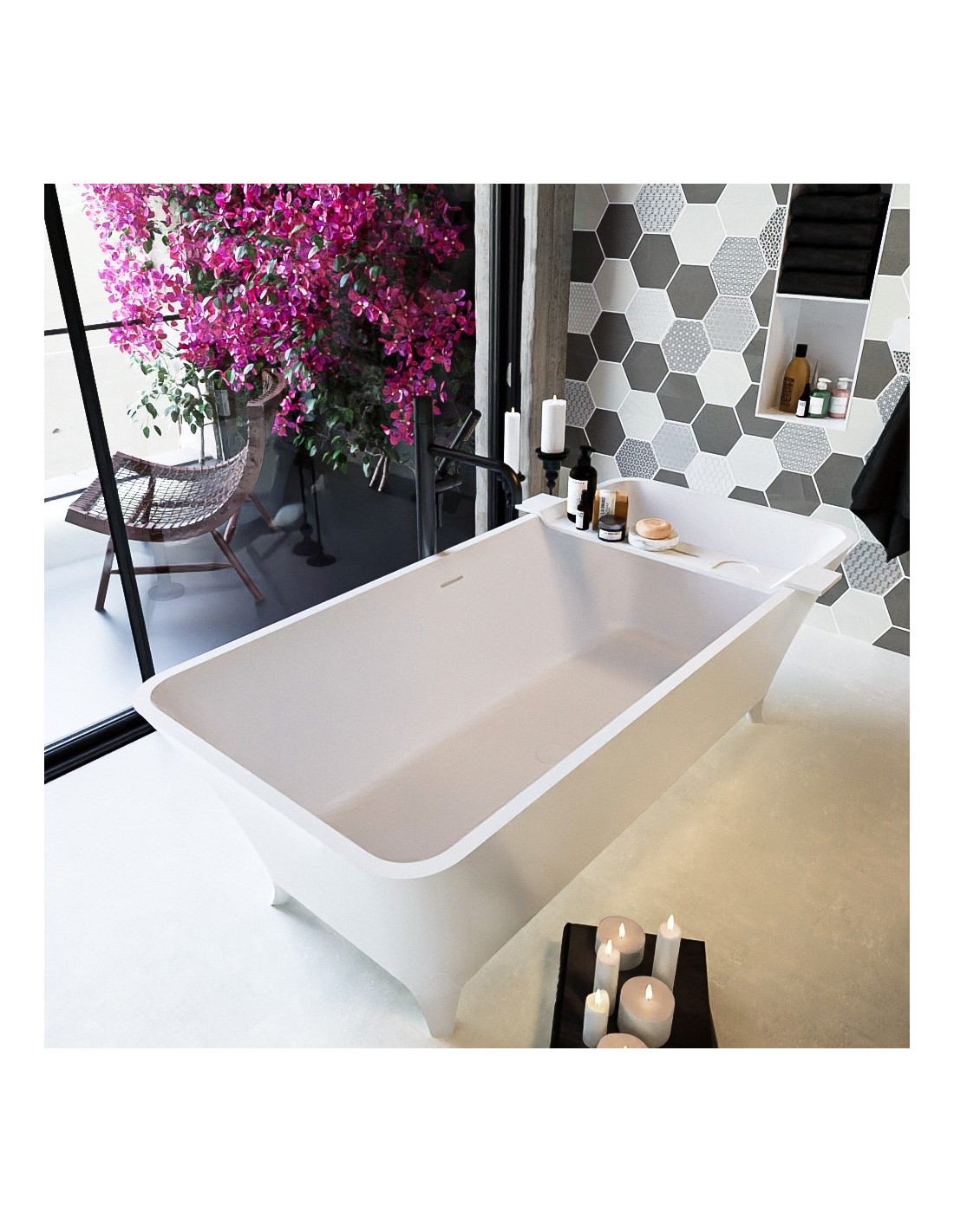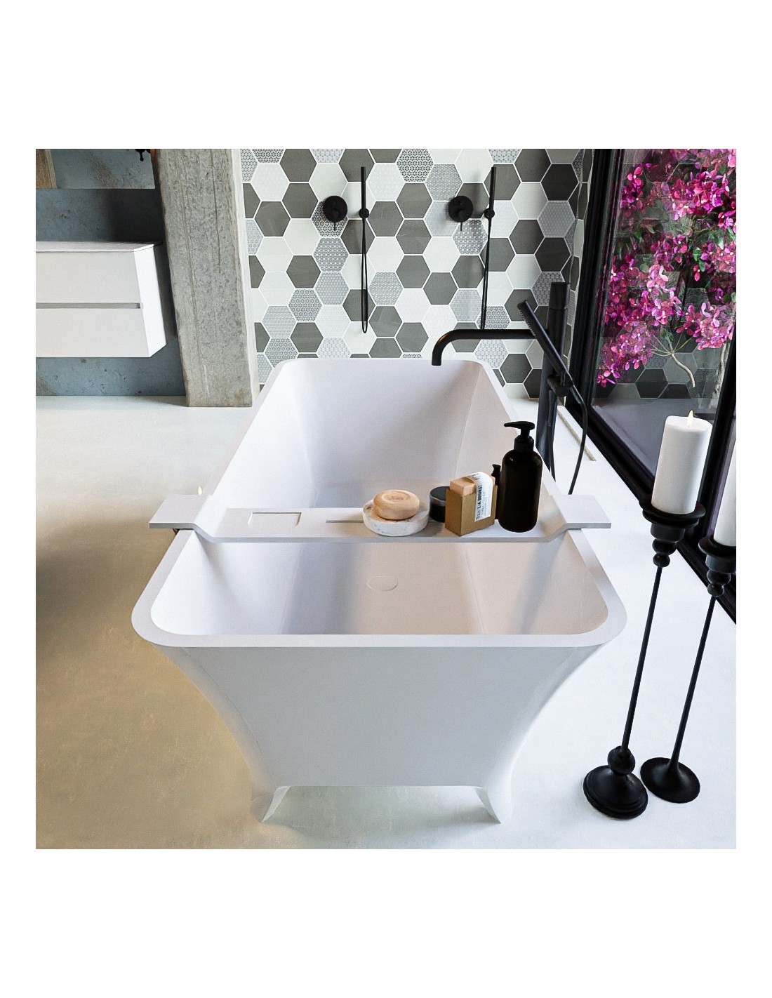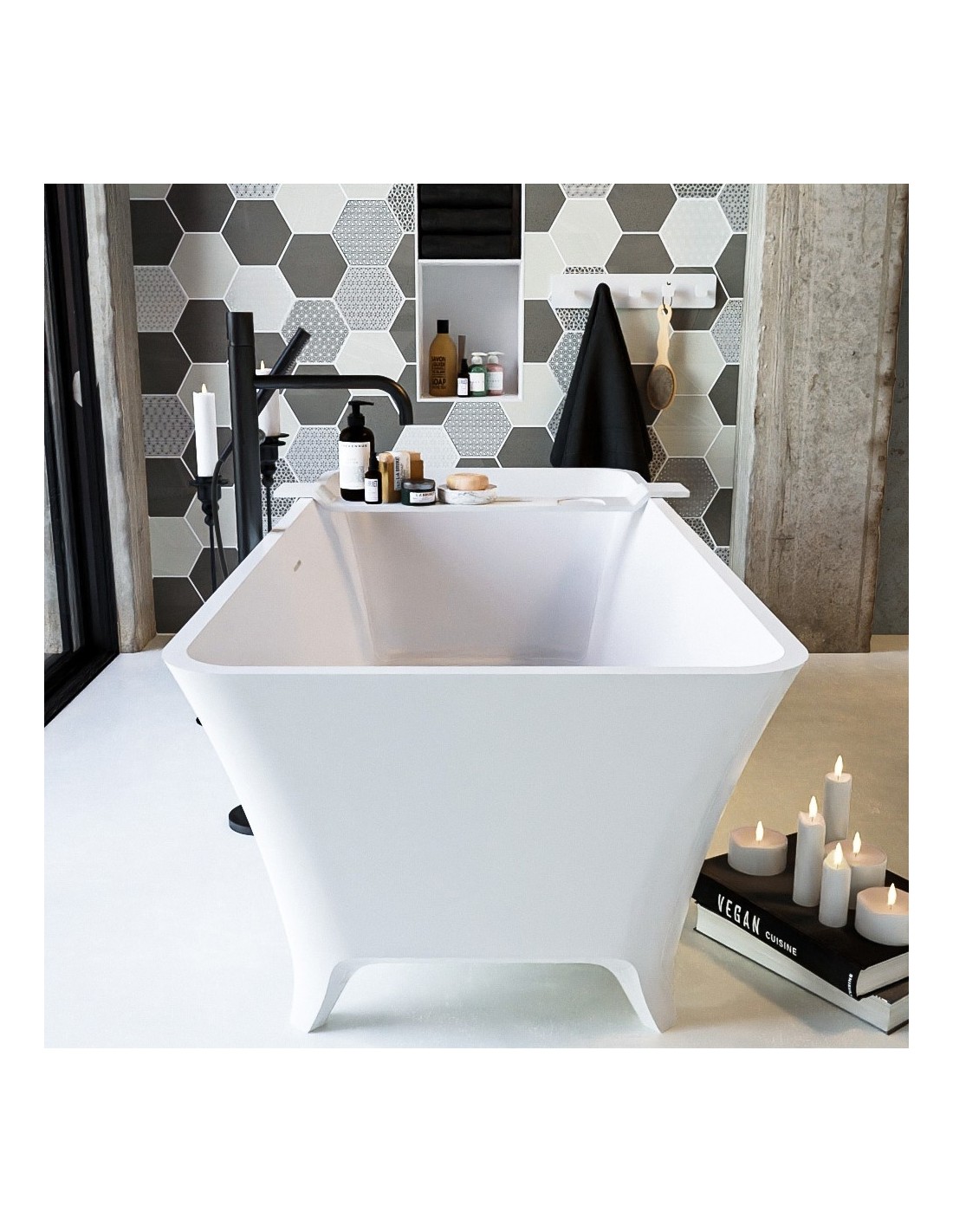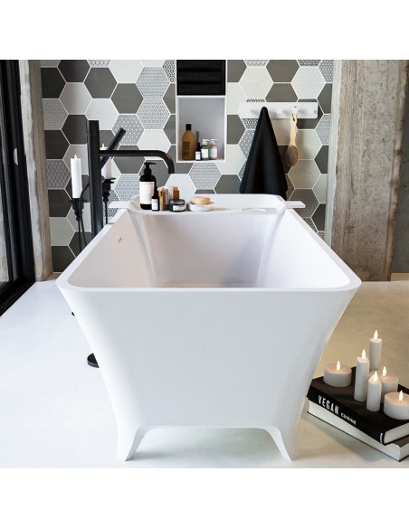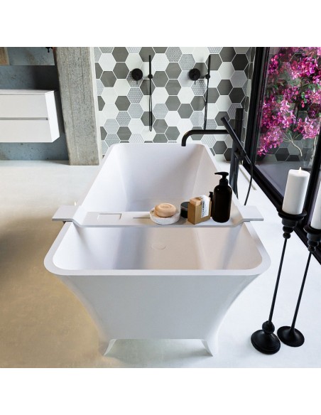LUNDY fritstående badekar i et moderne og stilrent design, fremstillet i det solide materiale "Solid Surface", der ikke alene giver badeværelset et stilrent design, men samtidig er lækkert at røre ved. Badekaret måler 170 cm i længden og 75 cm i bredden (ydermål). Badekaret har overløb.