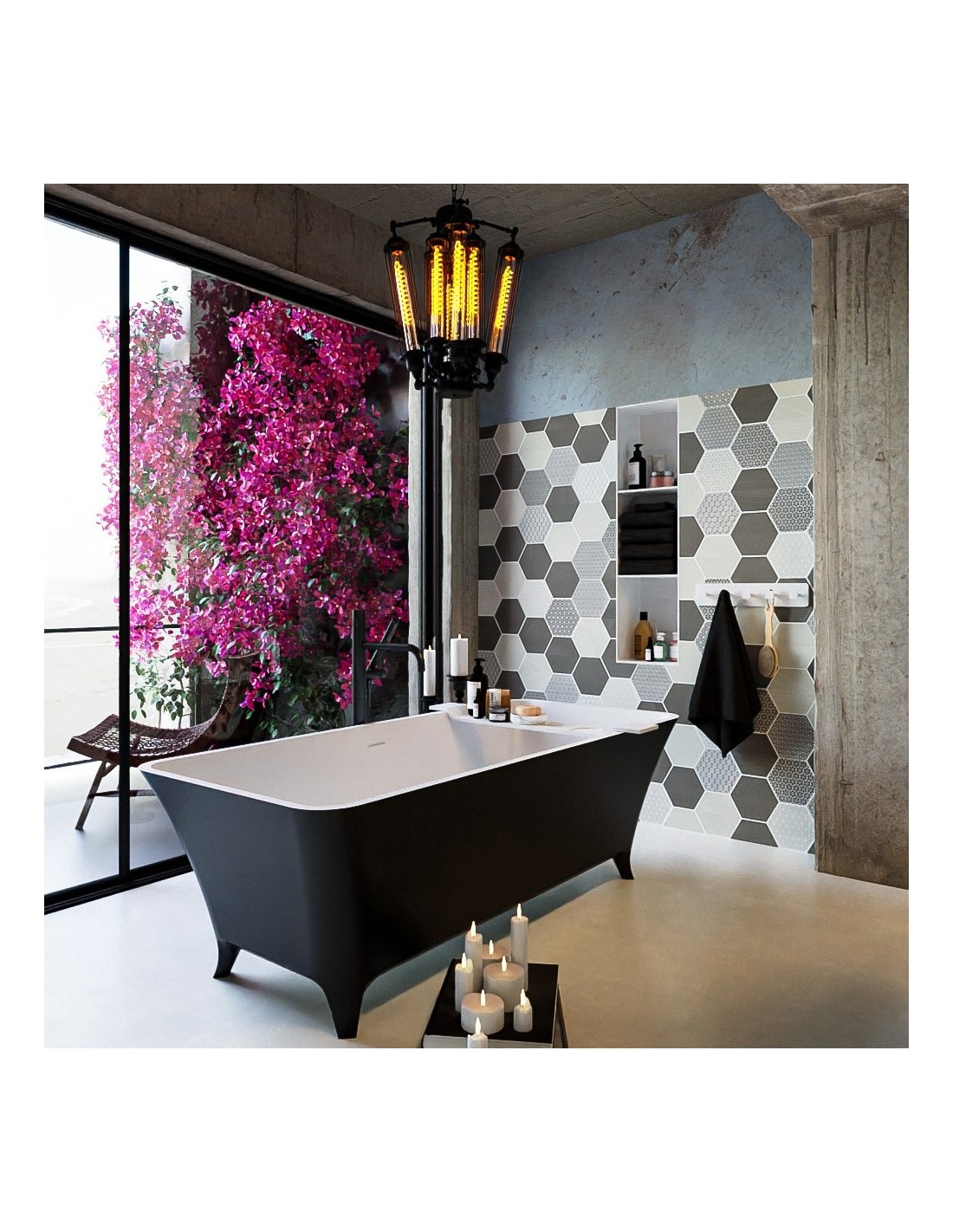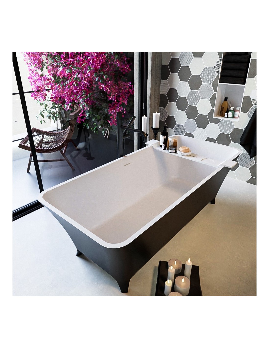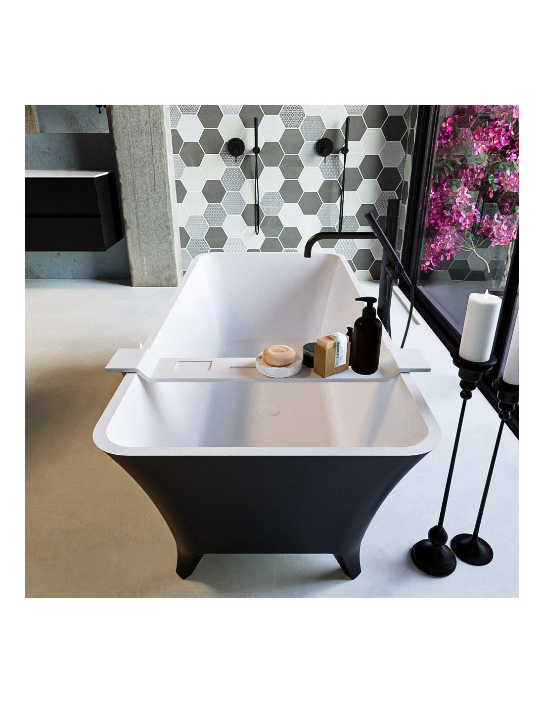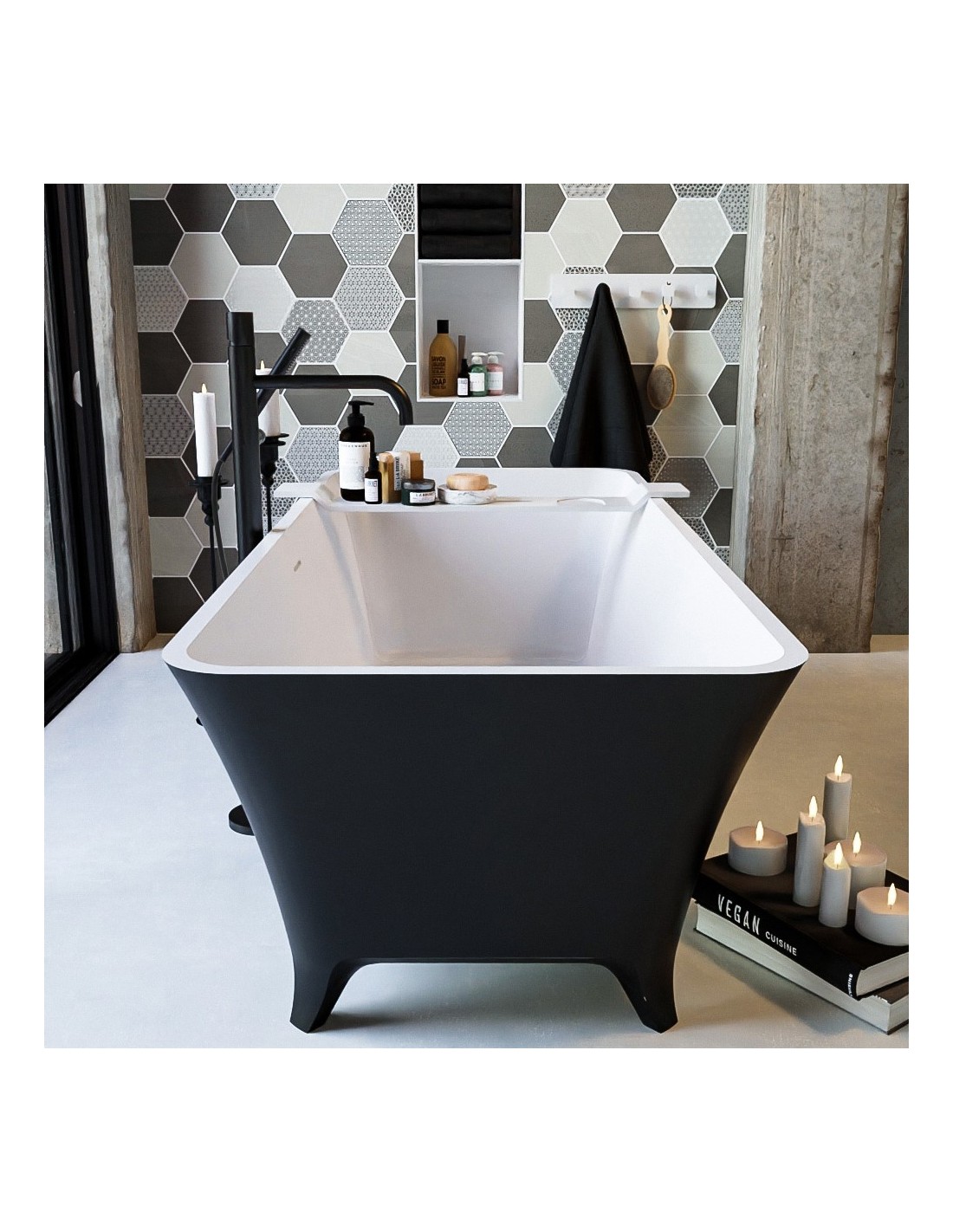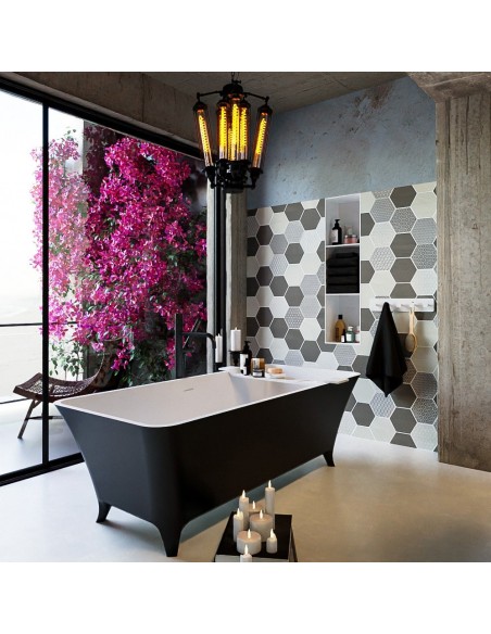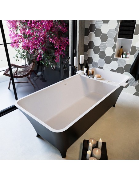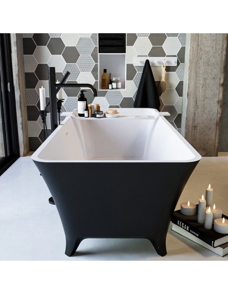 LUNDY fritstående badekar 170 x 75 cm Solid surface - Talkum/Sort