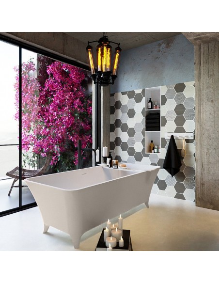 LUNDY fritstående badekar 170 x 75 cm Solid surface - Talkum/Linned