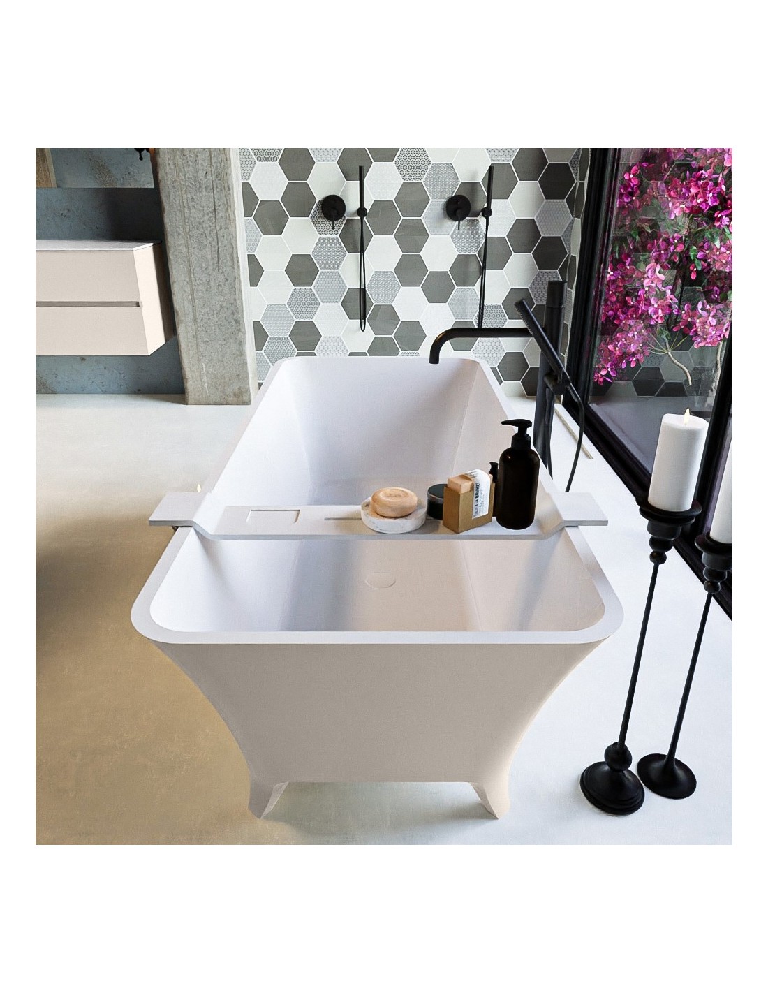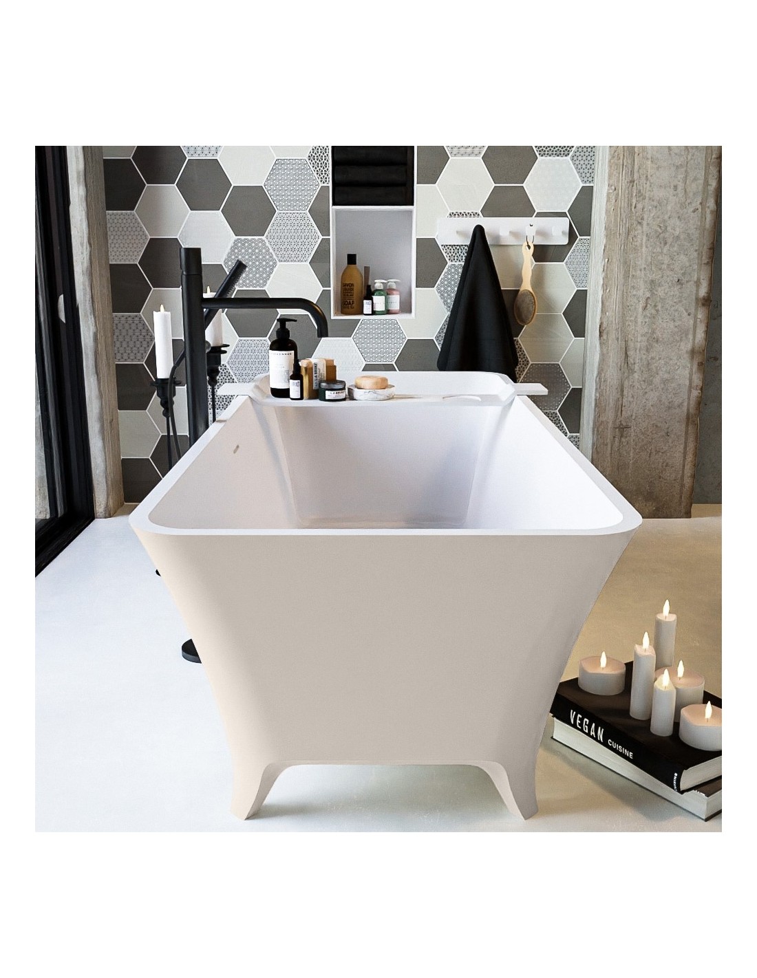 LUNDY fritstående badekar i et moderne og stilrent design, fremstillet i det solide materiale "Solid Surface", der ikke alene giver badeværelset et stilrent design, men samtidig er lækkert at røre ved. Badekaret måler 170 cm i længden og 75 cm i bredden (ydermål). Badekaret har overløb.