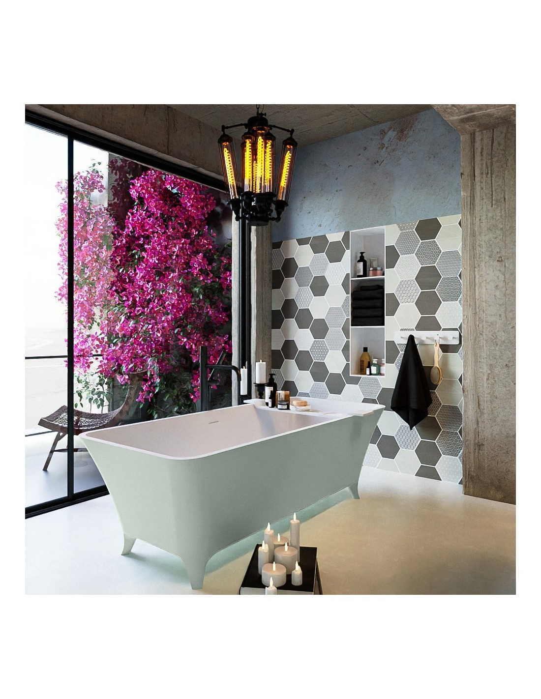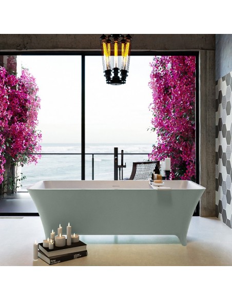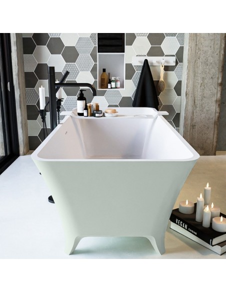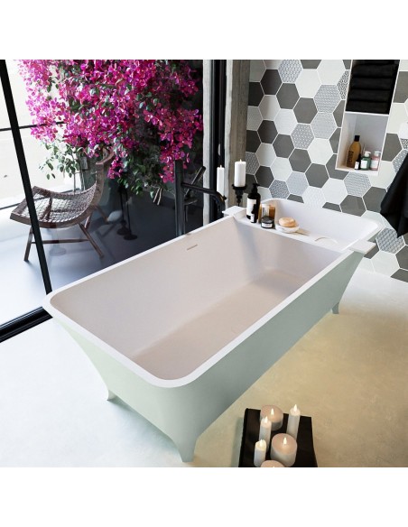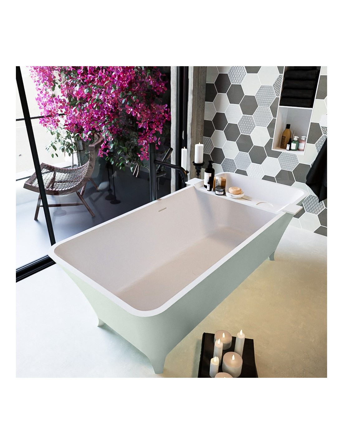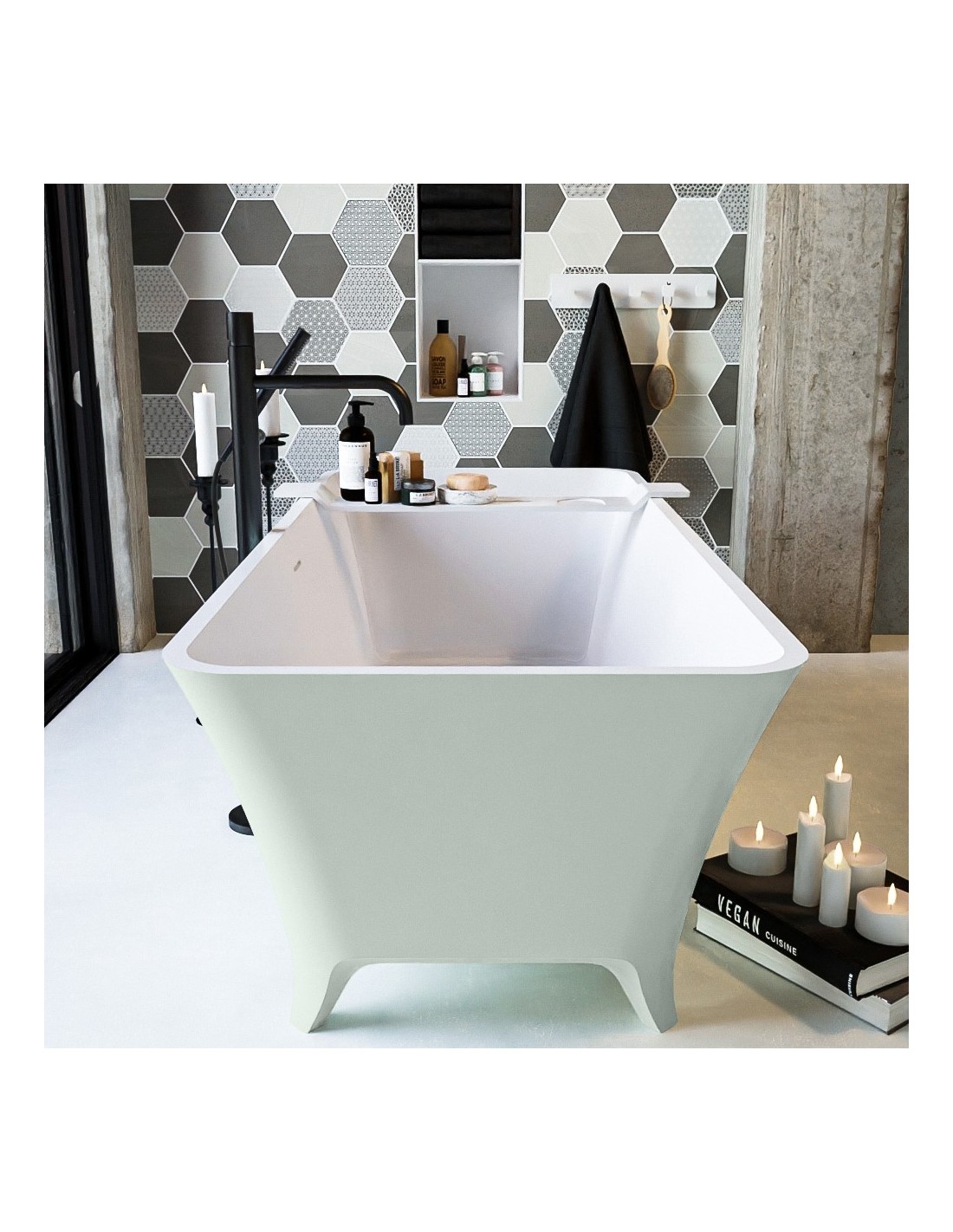 LUNDY fritstående badekar 170 x 75 cm Solid surface - Talkum/Svag grøn