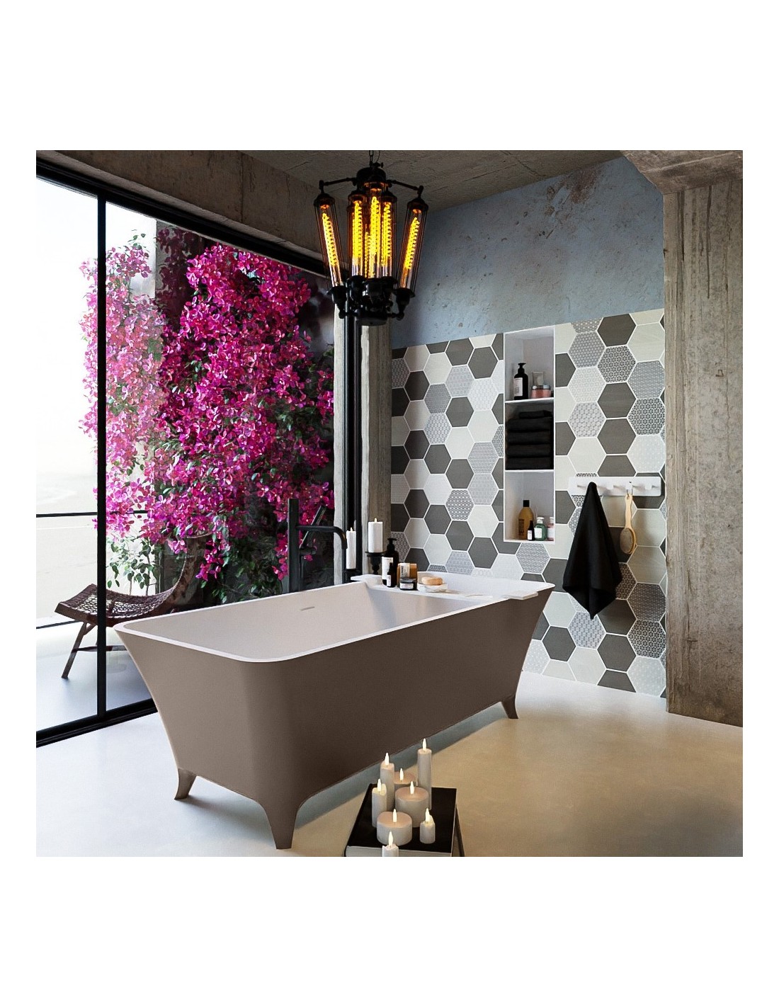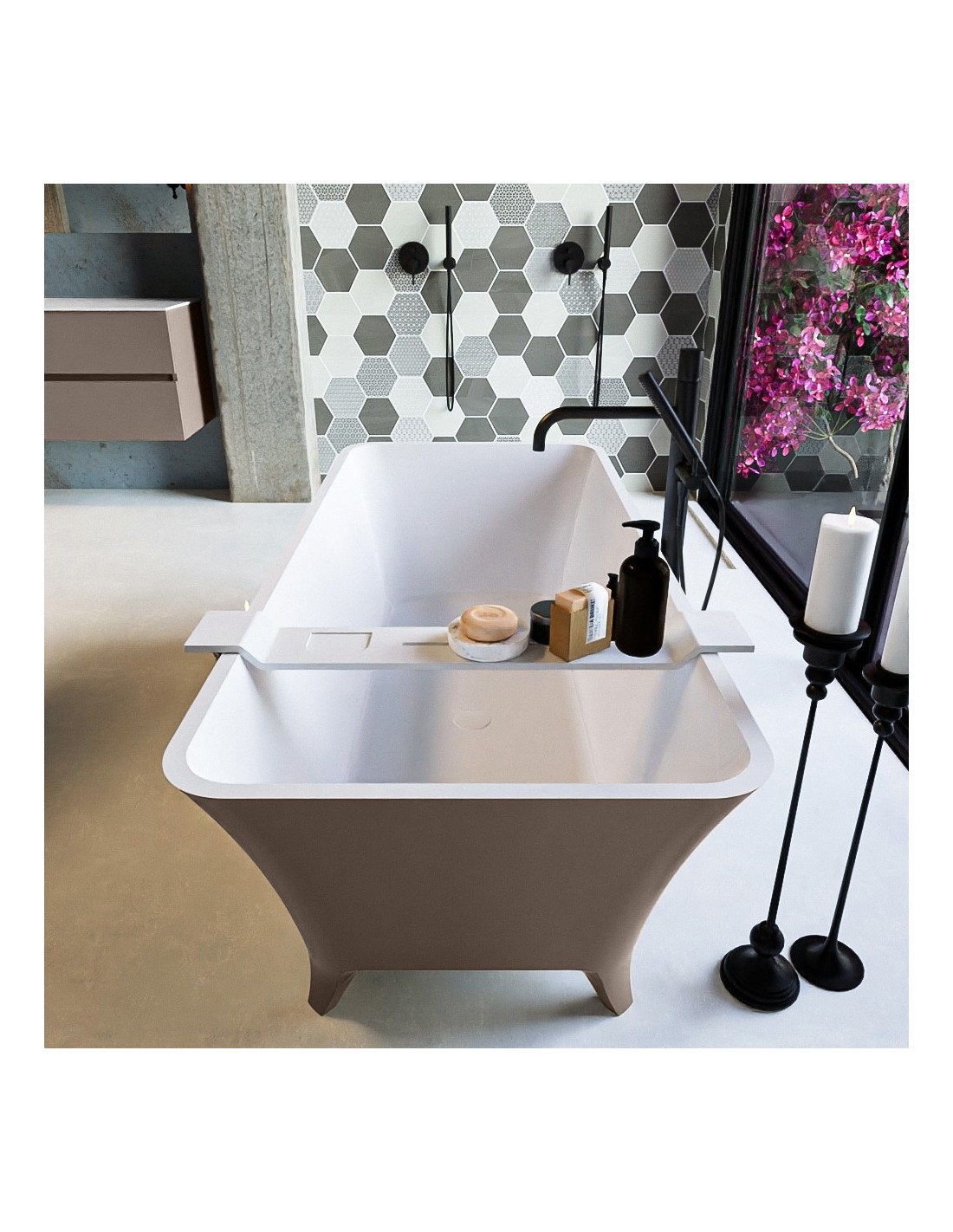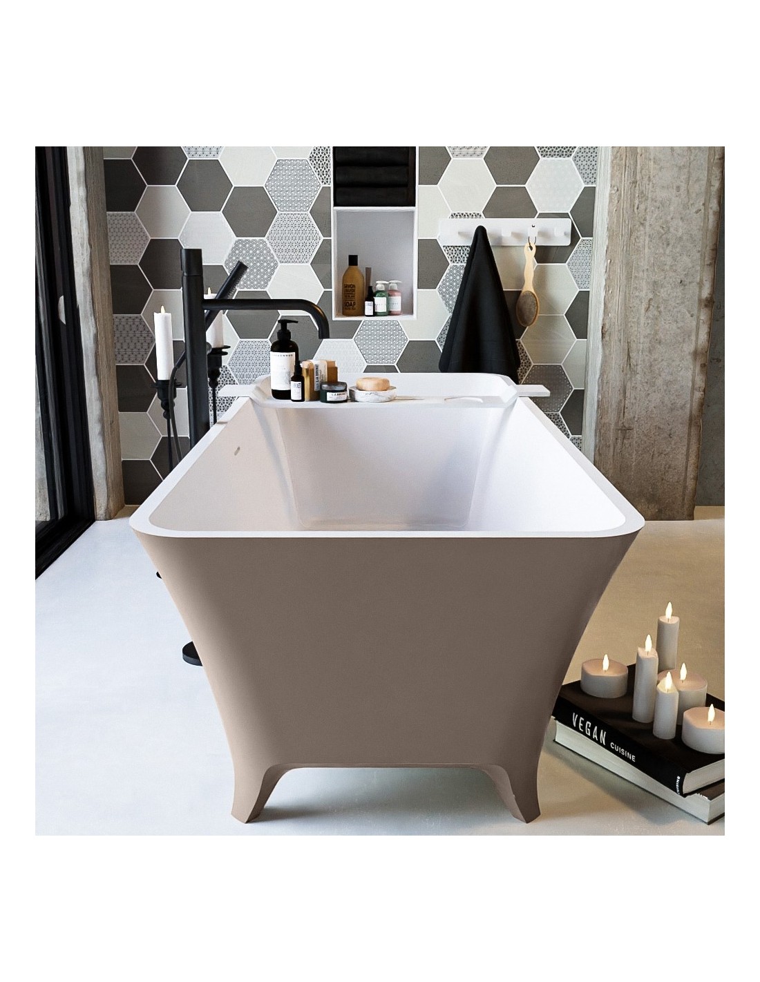 LUNDY fritstående badekar 170 x 75 cm Solid surface - Talkum/Røg