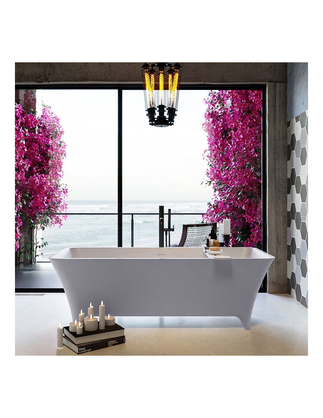 LUNDY fritstående badekar i et moderne og stilrent design, fremstillet i det solide materiale "Solid Surface", der ikke alene giver badeværelset et stilrent design, men samtidig er lækkert at røre ved. Badekaret måler 170 cm i længden og 75 cm i bredden (ydermål). Badekaret har overløb.